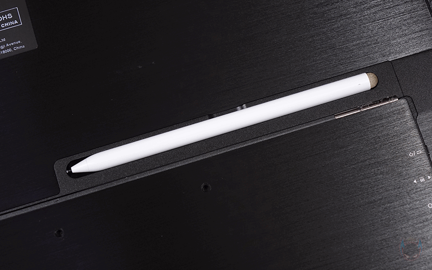 기본 제공되는 스타일러스 펜은 일반적인 스타일러스 펜처럼 앞쪽에는 스크린 펜촉이 뒤쪽에는 쿠션형 터치가 적용되어 있습니다. 앞쪽 스크린 펜촉은 4096 필압을 가졌으며, 한 번 충전으로 최대 130시간 사용할 수 있으며, P16 MAX PRO 포터블 모니터 외에도 일부 다른 태블릿PC에서도 사용되는 범용 제품인걸 제품 설명서를 통해 확인할 수 있죠. 펜 그립부분에는 버튼과 충전상태를 확인할 수 있는 LED 인디케이터가 배치되어 있는데, 버튼 앞부분은 전원 On/Off, 뒷부분은 오른쪽 마우스 클릭 기능을 가졌습니다. 그리고, 뒤쪽 쿠션형 터치 부근에는 충전케이블과 연결되는 USB 타입 C포트가 배치되어 있는데, 미사용시 먼지유입 방지를 위해 마개도 기본 제공해줍니다. 펜 수납은 앞서 확인한 모니터 후면에 마그네틱 방식으로 손쉽게 탈부착하며 수납하면 됩니다.