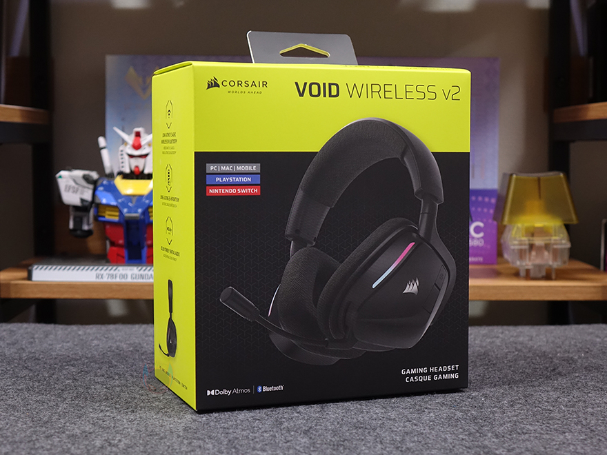 제품 패키지는 박스형태로 전면에는 모델명과 함께 제품 이미지를 담고 있어서 개봉 전에 제품 디자인을 간접적으로 확인할 수 있는데, 디자인 윤곽은 기존 VOID 시리즈에서 크게 벗어나지 않았다라는걸 짐작할 수 있습니다. 그리고, 호환 플랫폼 지원으로 PC, 맥(MAC), 모바일, 플레이스테이션, 닌텐도스위치 콘솔 표기도 확인할 수 있죠. 박스 한쪽 측면에는 VOID v2 헤드셋의 측면 이미지를 담고 있습니다.