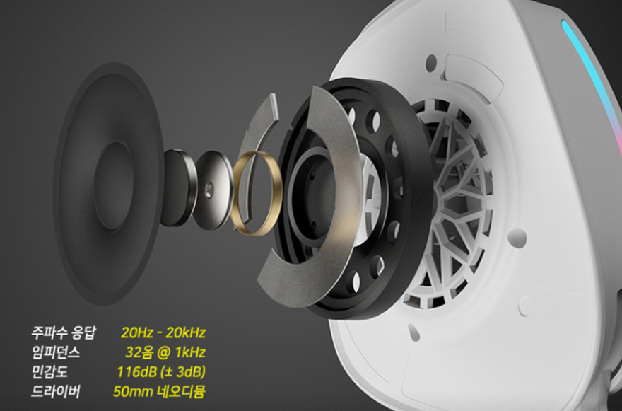 이어-컵 안쪽 그러니깐 착용 부분의 이어-패드는 귀를 완전히 덮는 밀폐형으로 편안한 착용감을 위해 쿠션 메모리 폼을 사용했으며, 장시간 착용에도 땀발생이 최소화되도록 통기성 극세사직물 재질로 표면 마감을 했습니다. 당연히 이어-패드는 분리가 가능해 교체를 통해 언제든지 유지보수가 가능하며, 이어-컵 내부에는 50mm 네오디뮴 대형 드라이버 유닛이 탑재되어 있습니다.