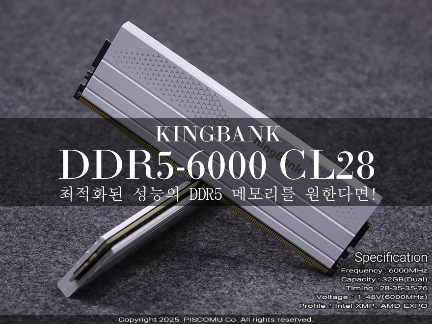 이제 PC시장은 DDR5로 완전히 세대교체가 되었죠. 조립 PC를 맞추게 되면 대부분 메모리(RAM) 선택을 DDR5로 하고 있습니다. 메모리는 용량이나 클럭이 성능에 영향을 주기도하지만, 또 한 가지가 영향을 줍니다. 바로, 타이밍(Timing) 값입니다. 램 타이밍은 지연시간 즉 레이턴시(Latency)를 의미하는데, 쉽게 말하자면 접근속도를 말하는데 낮을수록 빠른 거죠. 그래서, 용량과 클럭이 많으며 높고, 동시에 타이밍 값까지 낮으면 램 성능은 가장 좋습니다. DDR5 메모리 제조사들도 이런 조건에 맞춰서 다양한 설정으로 최대한 좋은 성능으로 제품들을 선보이고 있는데, 최근 국내 소비자들에게 해외직구로 인기가 높아진 킹뱅크(KingBank) 역시 예외는 아니죠. 용량과 클럭이 높은 제품들은 당연히 많고, 최근에 출시된 제품 중에는 램 타이밍값이 낮은 제품도 선보였습니다. 그래서, 오늘은 바로 이 램 타이밍 값에 초점을 맞추고 나온 제품을 만나보려고 합니다. 바로, KingBank DDR5-6000 CL28 모델이죠. 그럼,