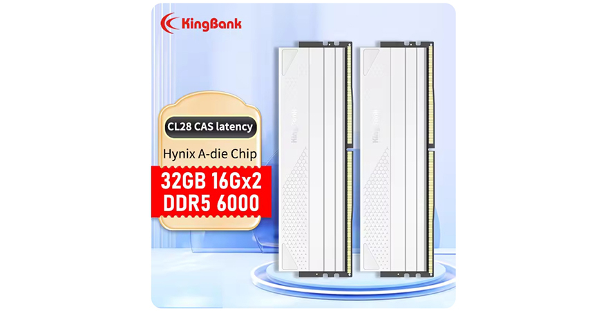 KingBank White CL28 Hynix A die Memoria DDR5 32GB 16GBX2 6000MHZ Rams Memory DDR5 Kit UDIMM Dual Channel Computador Desktop PC -