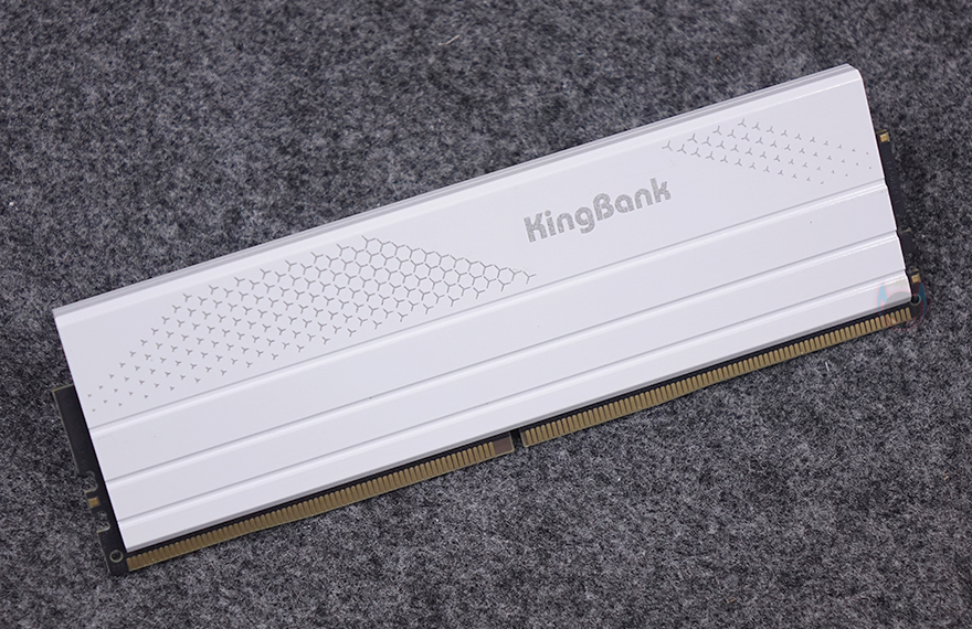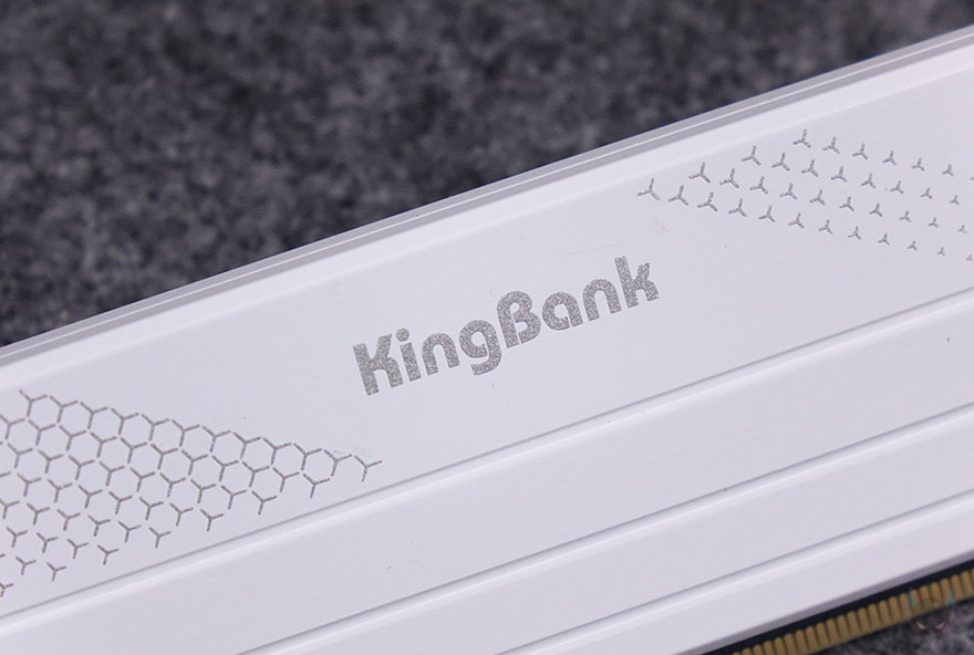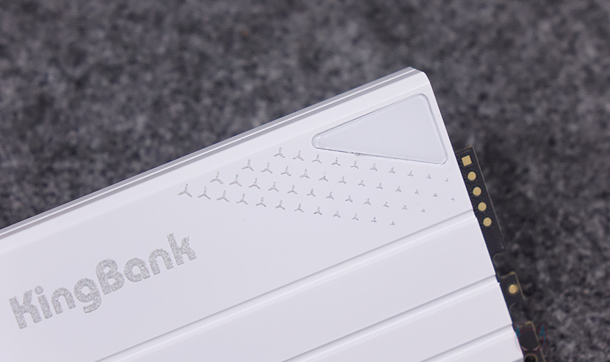 그럼, 킹뱅크(KingBank) DDR5-6000 CL28 메모리를 살펴보는데, 리뷰에 사용된 모델은 앞전에 만났던 Non-RGB 모델과 동일한 방열판(Heatsink) 디자인의 화이트 색상 버전입니다. 참고로, 최근 RGB 제품에서도 CL28 모델이 나왔기때문에 취향에 따라 선택하면 됩니다. 블랙색상과 조금 다른 점이라면, 화이트 색상 같은 경우 방열판 표면을 유광처리했습니다. 방열판 높이는 약 38mm이며, 한쪽에 KingBank 로고를 새겨놨죠. 반대쪽 방열판 디자인 역시 동일하면서 상단 모서리 부분에 포인트를 주는 디자인으로 약간 차별을 주었습니다.