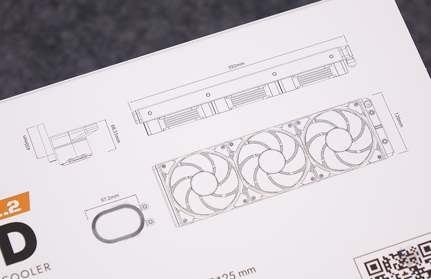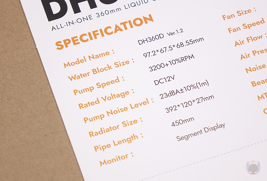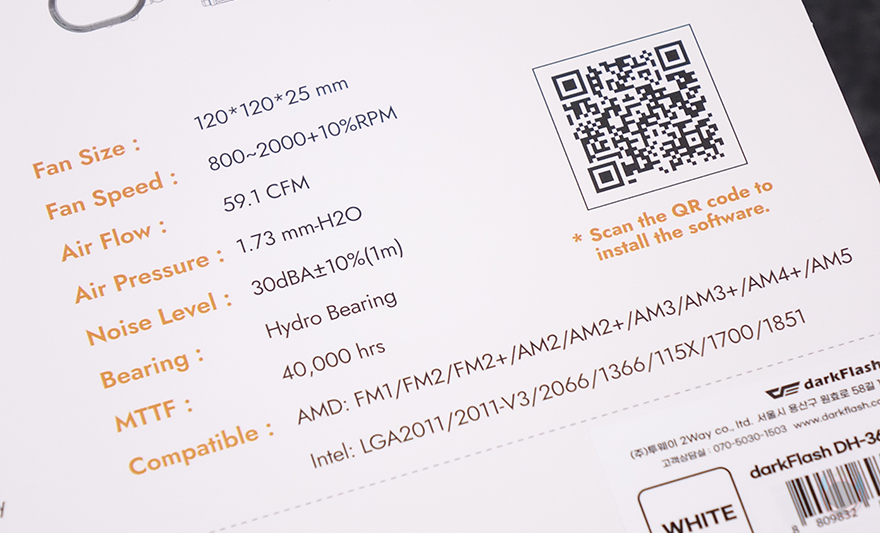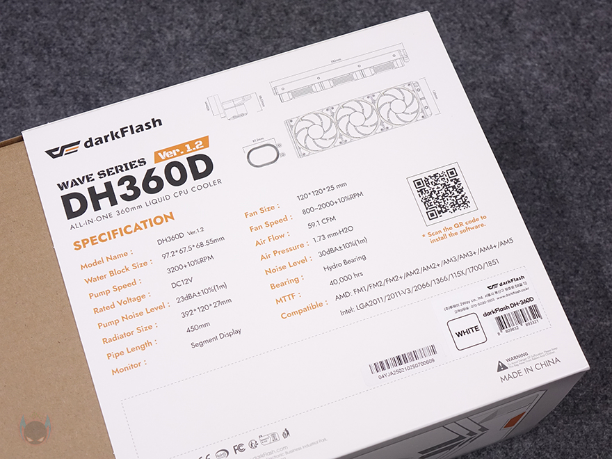 제품 패키지는 박스 포장으로 전체 밀봉까지 처리되어서 소비자입장에선 판매제품에 좀 더 신뢰를 가질 수 있는 패키지 형태입니다. 그리고, 박스 한쪽에는 패키징 밴드 종이가 적용되어 있는데, 전면에는 모델명과 함께 캐릭터 이미지 그리고 제품 이미지를 함께 담고 있죠. 모델명 아래에는 360mm 라디에이터라는 문구도 함께 표기해 놨는데, 글로벌시장 기준으로는 240mm 라디에이터 모델도 있지만, 국내에는 360mm 라디에이터 모델만 현재 출시된 상황입니다. 패키징 밴드 후면에는 제품의 사이즈 표기와 함께 기본 사양을 표기해 놨는데, 라디에이터와 펌프, 팬 사양을 상세하게 표기해 놨기 때문에 오프라인 매장에서 구입할 때도 충분히 정보를 얻을 수 있습니다. 그리고, 제품 박스 한쪽 측면에는 홈페이지 안내문구를 한국어를 포함해 다국적 언어로 표기해 놨죠.