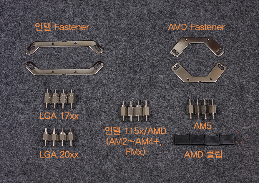 그럼, 이제 다크플래쉬 WAVE DH-360D 일체형 수랭쿨러를 사용해 보는데, 먼저 장착은 제공되는 제품 설명서를 참고하면 어렵지 않게 진행할 수 있습니다. 그리고, 사용자가 사용하는 CPU에 따라 인텔용과 AMD용 부속품을 구분하고, 소켓용 부속품들도 구분을 해서 사용해야 합니다. 필자 같은 경우 AMD CPU를 사용하기때문에 AM5 소켓 기준에서 장착법을 설명할텐데, 먼저 메인보드에 장착되어 있는 AMD 소켓 가이드를 분리합니다. 그리고, 제공되는 AM5용 스탠드오프 나사를 장착해줍니다. 워터블록에는 AMD용 패스너를 공용 나사를 사용해 장착해 준 다음, 그대로 스탠드오프 나사에 맞춰서 올려주고, 역시 제공되는 공용 마운팅 나사를 사용해 서로 결착시켜주면 워터블록 장착은 마무리가 됩니다. 물론, 워터블록에 있는 케이블들은 메인보드에 연결해주고, 라디에이터 같은경우에도 장착전에 팬 케이블들을 서로 연장케이블로 연결시키거나 제공되는 팬 허브에 연결해 메인보드에 연결시켜주면 됩니다. 라디에이터는 360mm 크기이기때문에 사용전 사용하는 PC케이스에 장착이 가능한지 먼저 확인을 해야되고, 장착은 제공되는 나사를 사용해 고정시켜주면 마무리가 됩니다. 워터블록과 라디에이터까지 장착이 되면, 마무리도 모듈식 스크린 디스플레이를 전원 케이블과 연결해 장착하면 되는데, 만약 메인보드 방열판때문에 간섭이 생긴다면 모듈식 스크린 디스플레이를 90도 방향으로 전환해 장착하면 됩니다.