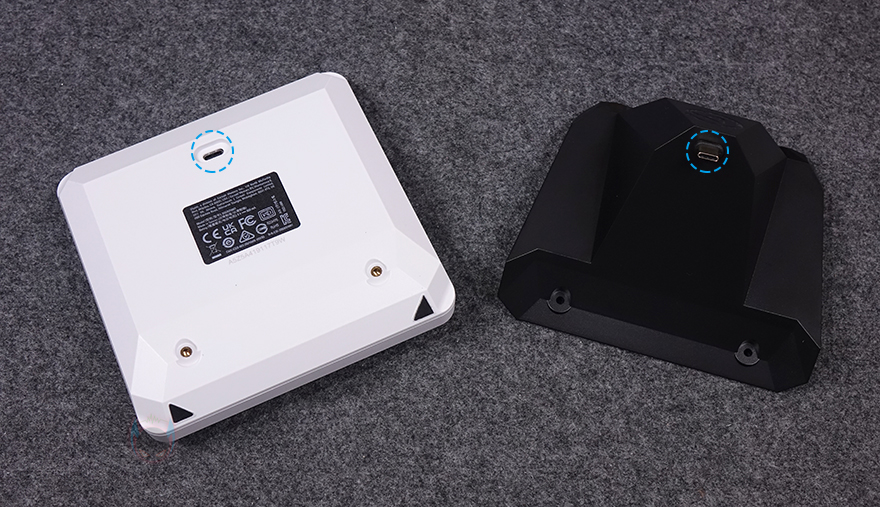 그럼, 엘가토 XLR Dock을 살펴보는데, 색상은 블랙 색상 1가지로만 출시되었습니다. 뒤에서 확인하겠지만, 스트림덱 플러스가 블랙과 화이트 2가지 색상으로 출시되어서 화이트 색상 사용 소비자입장에선 XLR Dock이나 USB 허브 제품 모두 블랙 색상으로만 출시된 점이 좀 아쉬울 수 있습니다. XLR Dock은 스트림덱 플러스 후면에 장착되는데, 먼저 앞부분 그러니깐 결합되는 부분에는 스트림덱 플러스 후면 USB 포트와 연결되는 USB-C 단자를 확인할 수 있습니다. 그리고, 후면에는 엘가토 로고와 함께 방금 확인한 USB-C 단자가 신호 손실 최소화를 위해 금도금으로 처리된 것을 추가로 확인할 수 있으며, 맨 아래에는 3개의 포트가 배치되어 있는데, XLR 마이크를 연결할 수 있는 XLR 포트, 마이크 모니터링을 할 수 있는 3.5mm 헤드폰 포트, 그리고, 전원케이블 연결의 USB-C 포트입니다. 참고로, 전원케이블은 스트림덱 플러스에서 사용하는 USB 전원케이블을 그대로 사용합니다. 그리고, 제품 밑바닥 부분에는 미끄럼방지로 널찍한 패드가 부착되어 있으며, 개봉 시에는 보호비닐이 부착되어 있기 때문에 사용 전에 제거해야 합니다.