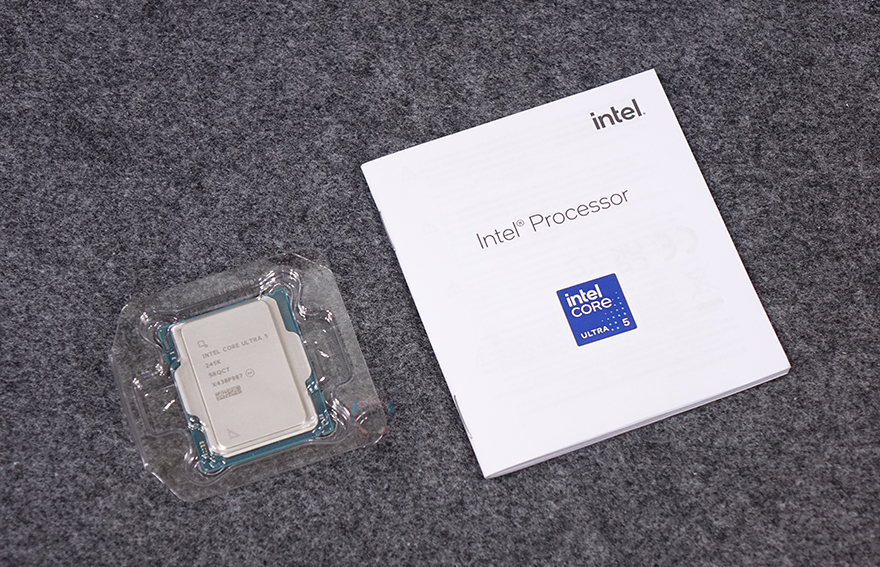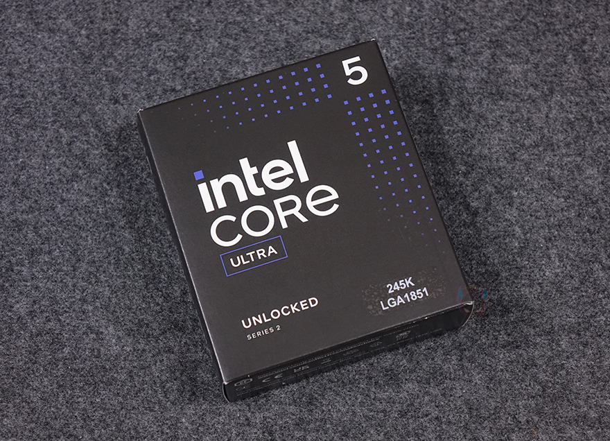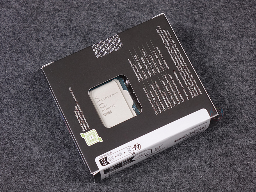 이번 인텔의 코어 울트라 시리즈2 CPU 대규모 체험단 진행에는 CPU와 함께 이를 지원하는 메인보드, 그리고 USB 메모리가 제공되는데, USB 메모리의 용도는 뒤에서 확인할 수 있으며, 필자가 체험할 CPU는 코어 울트라5 시리즈2 245K로 오버클럭 지원의 K버전과 미지원의 Non-K까지 포함 전체 코어 울트라 시리즈2 CPU 중에서 가장 중간에 위치하는 모델이라 할 수 있습니다. 그럼, CPU 패키지 박스부터 살펴보는데, 박스 전면에는 인텔 코어 울트라 표기와 함께 245K 모델 구분 스티커를 부착해놨으며, 오버클럭 지원을 의미하는 언락표시도 확인할 수 있습니다. 참고로, 인텔은 오버클럭 지원 CPU에는 기본 쿨러가 제공되지 않죠. 박스 후면에는 내부에 포장된 CPU 실물을 볼 수 있게 노출되어 있으며, 측면에는 국내 인텔 CPU 공식수입사 3곳 중 1곳인 피씨디렉트 정품 스티커와 함께 정품인증 코드를 확인할 수 있습니다.