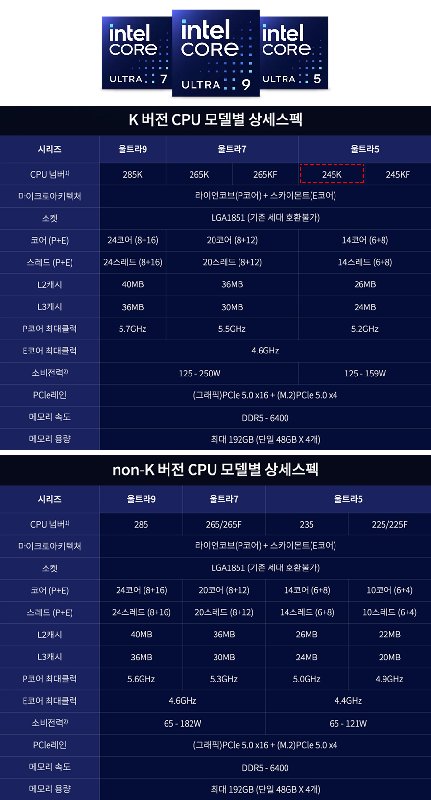 [다나와] 인텔 코어 울트라5 시리즈2 245K (애로우레이크) (정품)