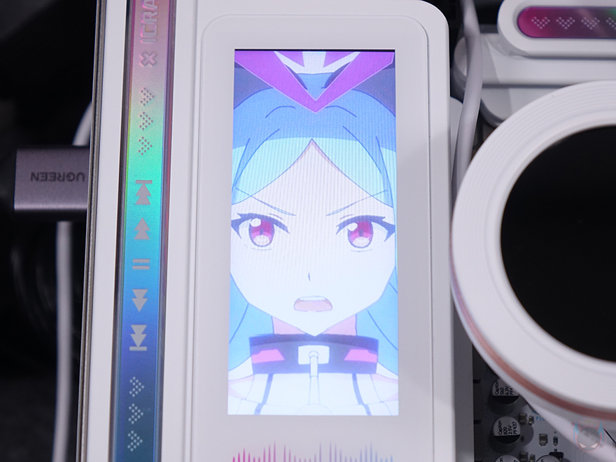 직접, MAXSUN(맥선) iCraft B860M CROSS PRO 메인보드를 사용해 보면, 일단 메인보드에 전원만 연결해도 전원부 방열판에 배치된 3.4인치 LCD 디스플레이 화면이 켜집니다. 기본 화면은 총 3가지 애니메이션 화면으로 켜기 전과 부팅 후 껐을 때 대기상태, 그리고, 부팅 후 상태에서 각각 다른 화면을 보여줍니다. 뒤에서 다시 확인하겠지만, 전용 소프트웨어를 통해 다른 화면 및 시스템 모니터링 화면으로도 변경할 수 있으며, 운영체제로 들어가기 전 부팅 과정에서도 iCraft CROSS 캐릭터 화면을 보여줍니다. 확실히 이전 세대보다 완성도가 더 높아졌다라는 걸 느낄 수 있죠.