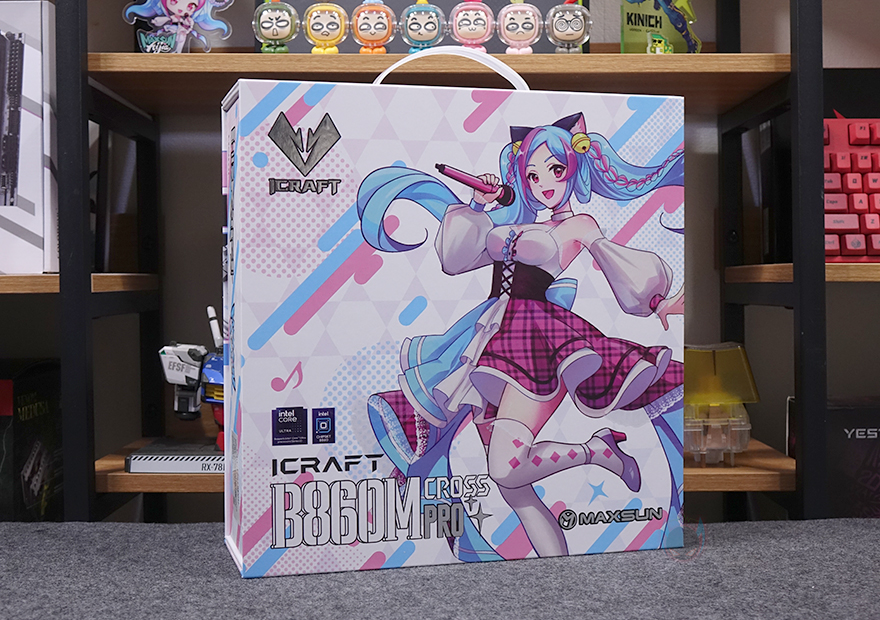 iCRAFT CROSS 시리즈는 차별화된 디자인 제품이기때문에 패키지 포장부터 신경을 쓰는데, 박스 전면은 오픈 도어 커버방식으로 커버를 열면 안쪽에 다시 한번 iCRAFT CROSS 시리즈 캐릭터인 Aijia 이미지를 확인할 수 있고, 박스 손잡이 부분에 자석방식의 오픈 부분을 열면, 내부에 포장된 메인보드를 확인할 수 있으며, 아래에 나머지 구성품들을 확인할 수 있습니다. iCRAFT B860M CROSS PRO 메인보드는 정전기방지 보호비닐에 포장되어 있으며, 외부 충격보호를 위한 우레탄-폼 포장재까지 사용했으며, 나머지 구성품들도 개별 포장으로 처리되어 있습니다. 또한, 이전 모델에서도 제공되었던 미니 공구 드라이버, Aijia 스탠딩 간판 및 스티커 굿즈(Goods)들을 제공해주고 있죠.