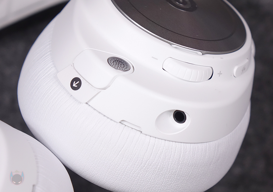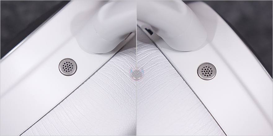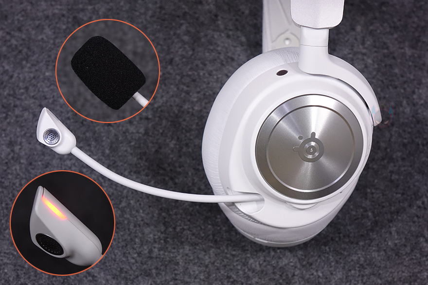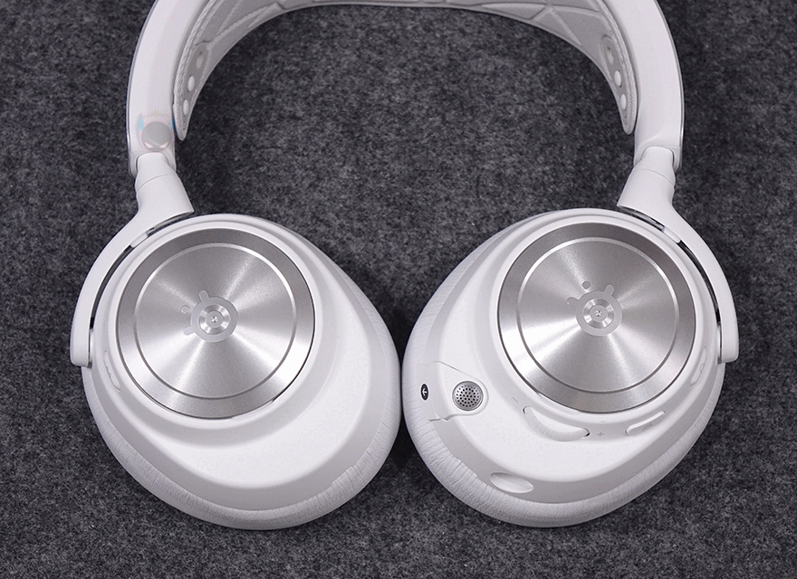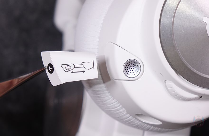 왼쪽 이어컵 같은 경우에는 로고 부분 플레이트를 분리했을 시, 안쪽에 USB 타입 C 포트를 확인할 수 있는데, 오른쪽 이어-컵에 내장되는 배터리를 교체하지 않고도 충전케이블을 사용해 바로 헤드셋에서 충전 유지를 할 수 있습니다. 그리고, 왼쪽 이어-컵 측면에는 전원 버튼 및 LED 인디케이터를 비롯해 마이크 음소거 버튼, 볼륨조절 휠이 배치되어 있는데, 음소거 버튼 같은 경우 버튼을 누르면 약간 튀어나와 음소거 상태를 쉽게 구분할 수 있도록 섬세하게 신경 썼습니다. 또한, 이어-패드와 근접되는 위치에는 일반 유선 헤드셋으로도 사용할 수 있게 3.5mm 잭 포트가 적용되어 있으며, 바로 앞부분에는 수납식의 마이크가 적용되어 있는데, 개봉 시 끼워져 있는 안내가이드를 빼내고 마이크를 당기면 나옵니다. 마이크는 자유롭게 각도조절을 할 수 있게 플렉시블 방식으로 적용되었고, 앞서 구성품에서 확인한 팝 필터를 사용하면 좀 더 마이크 사용 시 주변 소음을 감소시킬 수 있죠. 참고로, 마이크 음소거 모드시에는 마이크 윗부분에 빨간색 LED가 점등되고, 베이스 스테이션에서 밝기조절을 할 수 있습니다. 이어-패드는 귀를 완전히 덮는 밀폐형이며, 제품 색상과 통일시켰고, 가죽 질감에 편안한 착용감을 위해 쿠션 패드로 적용되었으며, 내부 유닛과 밀착되는 부분에는 망을 적용하고 있습니다. 참고로, 아크티스 노바 프로 무선(ARCTIS NOVA PRO WL) 헤드셋 드라이버 유닛은 네오디뮴 마그네틱입니다.