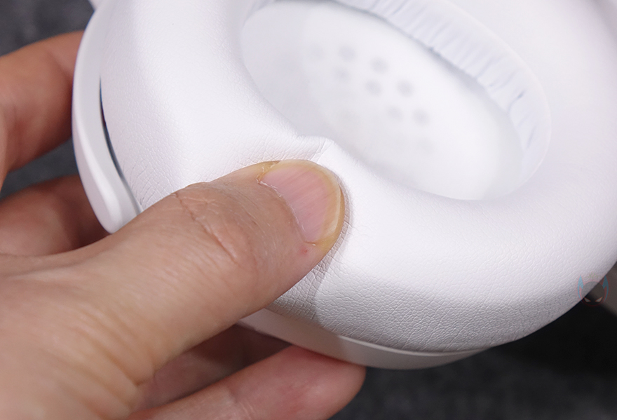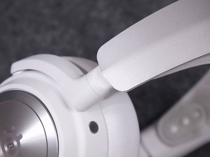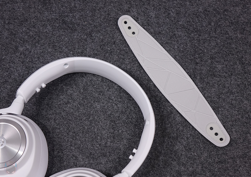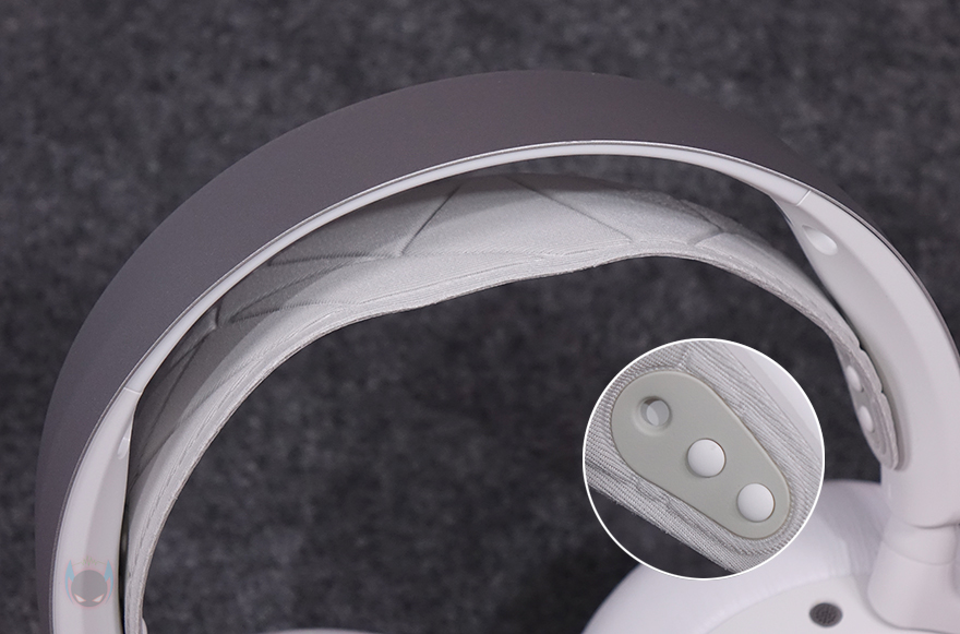 헤드 밴드 양쪽 끝부분은 슬라이드 방식으로 기본 밴드 길이조절이 되도록 설계되어 있으며, 이어컵과 연결된 길이조절의 프레임은 90˚도 회전이 가능해 거치대나 보관용 케이스 사용 시 용이하도록 했습니다. 또한, 착용 시에는 약간의 이어-컵 각도조절이 가능한 틸트 기능도 있죠.
