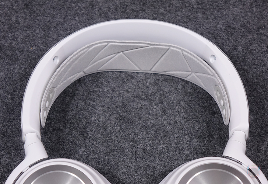 본격적으로 스틸시리즈 아크티스 노바 프로 무선(ARCTIS NOVA PRO WL) 헤드셋을 살펴보면, 색상은 블랙과 화이트 2가지로 출시되어 소비자가 취향 선택을 할 수 있도록 했습니다. 부위별로 좀 더 자세히 살펴보면, 먼저 헤드 밴드 부분은 이어-컵을 잇는 기본 프레임의 바깥쪽 부분에 스틸 재질을 마감처리해 내구성을 높였으며, 안쪽에는 착용 조절이 되는 밴드를 장착하고 있습니다. 탄성력을 가진 밴드이기 때문에 착용하는 사람에 따라 자동 조절이 되고, 양쪽에 고정홈에 끼워진 형태라 쉽게 분리/장착할 수 있고, 홈 조절을 통해 탄성력 조절도 가능합니다. 또한, 부근에는 각각 좌우 표기도 해놨죠. 참고로, 밴드는 스틸시리즈 공식스토어(https://brand.naver.com/steelseries)에서 다양한 컬러로도 별도 판매하고 있어서 취향에 따라 변경 사용할 수 있습니다.