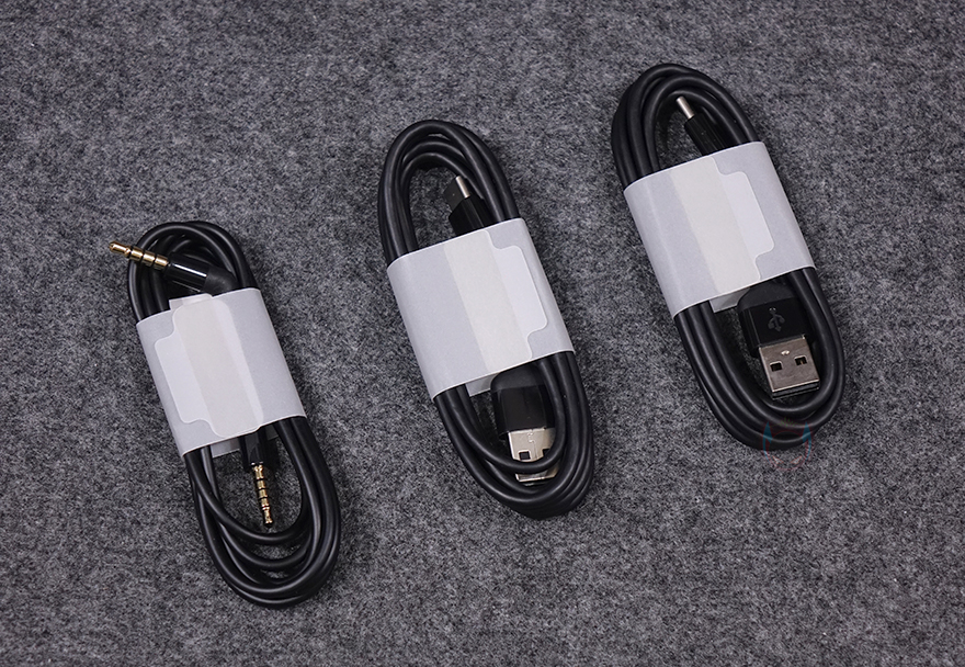 끝으로, 케이블은 총 3개가 제공되는데, 하나는 앞서 언급했던 일반 유선 헤드셋으로 사용할 수 있게 3.5mm 오디오 케이블로 4극 방식이라 모바일에서도 사용할 수 있으며, 길이는 1.2m입니다. 그리고, 나머지 2개의 케이블은 방금 확인한 베이스 스테이션에 사용되는 외부 장치와 연결할때 사용되는 USB 케이블로 USB Type-A to C 인터페이스를 가졌으며, 길이는 1.5m입니다. 참고로 2개의 케이블을 PC와 콘솔 게임기 각각 연결하면 베이스 스테이션에서 손쉽게 연결 전환을 할 수 있죠.