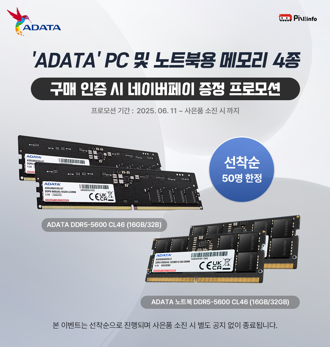 파인인포, ADATA PC & 노트북용 메모리 4종 구매 이벤트 실시
