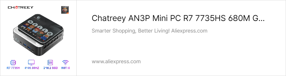 국내 소비자들이 알리에서 미니PC 구입을 하다보면 가장 많이 볼 수 있는 브랜드 중 하나가 바로 CHATREEY다. 그리고, CHATREEY를 알리게 된 대표적인 미니PC가 AN2P였고, 최근에는 AN3P 후속모델까지 나왔다. 특히, 이번 AN3P는 이전 모델보다 월등히 성능이 높아진 라이젠 7735HS CPU를 탑재했는데, 내장그래픽도 함께 높아진 라데온 680M을 탑재해, 올해 200달러미만에서 작업용과 게임용으로는 가장 가성비다운 모습을 갖췄으니 관심있었다면 미리 장바구니에 담아두자.
