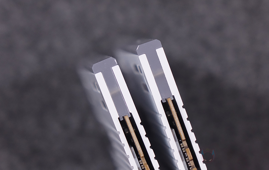 그럼, 본격적으로 킹뱅크(KingBank)의 DDR5-6000 48GB(24GBx2) 메모리는 살펴보는데, 시작에서 언급했듯이 이번에 새롭게 출시한 RGB 모델은 새로운 디자인 즉, 방열판(Heatsink) 디자인이 새롭게 적용되었습니다. 지금까지 킹뱅크에 DDR5 메모리 제품군에는 3가지 디자인의 방열판이 적용되었는데, 이번 4번째로 새로운 디자인이 나온 거죠. 특히, 이번 방열판은 기존 제품들보다 좀 더 방열판 높이가 높아진 약 45mm를 가지고 있어서, 비슷한 높이의 경쟁사 메모리들처럼 CPU 공랭쿨러(CPU Air coolr) 제품에 따라 일부 간섭이 생길 수 있습니다. 물론, 수랭쿨러는 상관없습니다. 그리고, 화이트 색상뿐만 아니라 블랙 색상도 함께 출시되었습니다.