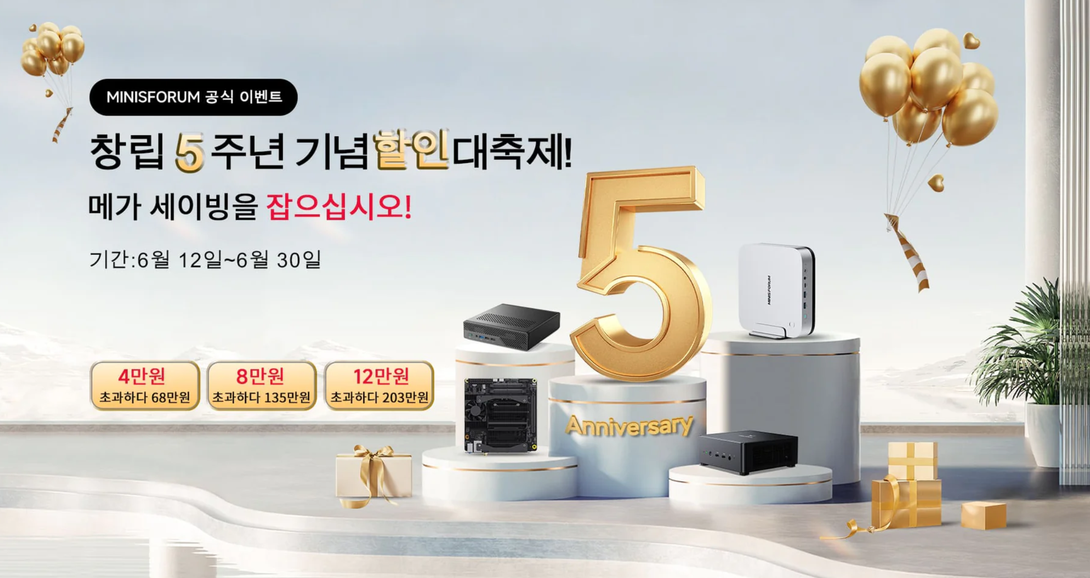 미니스포럼코리아(Minisforum KR), 5주년 기념할인 대축제 진행(6월 30일까지)