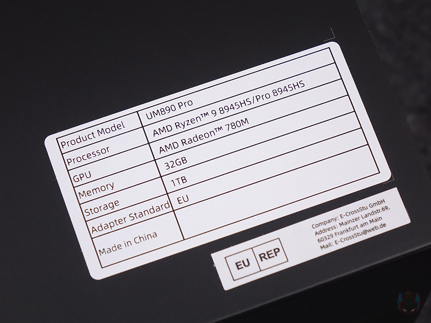제품 패키지는 박스와 패키지 밴드 적용으로 구입 시 박스 전체 밀봉처리가 되어있어서 소비자입장에서는 좀 더 판매 제품에 신뢰를 가질 수 있습니다. 패키지 밴드는 당연히 종이재질이며, 윗부분에는 MINISFORUM 로고를, 측면에는 엘리트미니(ELITEMINI) UM890 PRO 모델명을 금색 문구로 새겨놨죠. 후면에는 제품의 옵션 사양을 표기해 놨는데, CPU, 메모리, 저장장치 용량을 확인할 수 있습니다. 참고로, CPU 사양표기를 오면 AMD 라이젠 9 8945HS, PRO 8945HS 2가지를 표기해 놨는데, CPU가 둘 중 랜덤으로 적용됩니다. 물론, 두 CPU의 사양은 동일하기 때문에 성능에 차이는 없습니다. 그리고, 엘리트미니 UM890 PRO 미니 PC 구매옵션은 홈페이지 기준으로 No RAM, No Storage의 베어본부터 32GB+1TB, 64GB+2TB 총 3가지 옵션 중 선택할 수 있습니다.