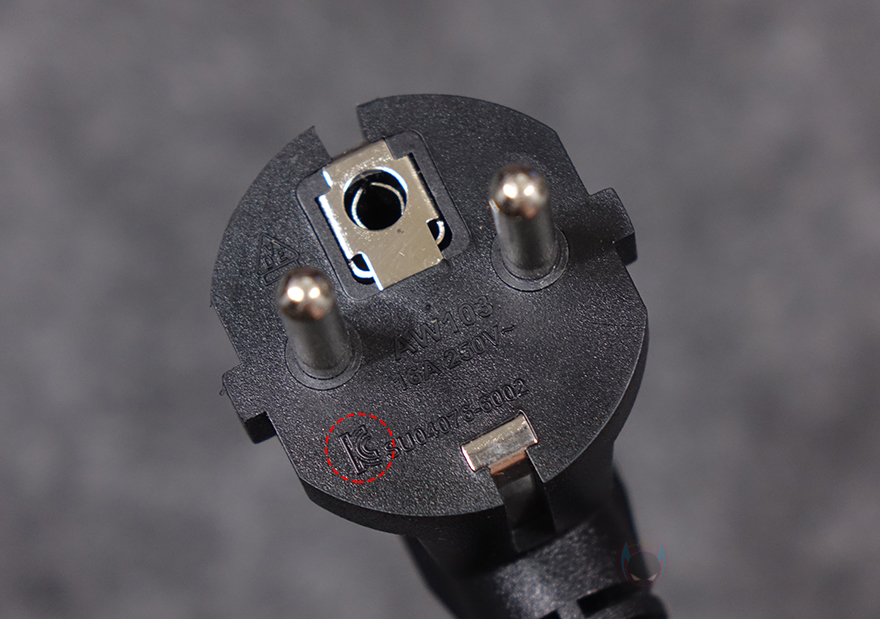 끝으로, 기본 제공되는 HDMI 케이블과 전원케이블 및 어댑터를 잠깐 살펴보면, HDMI 케이블은 약 90cm 길이에 보관 시 먼지 유입 및 부식 방지를 위해 보호캡을 함께 제공해주고 있으며, 양쪽 인터페이스에는 신호손실 최소화를 위해 금도금처리가 적용되어 있습니다. 전원케이블 및 어댑터 경우에는 분리형이며, 플러그는 한국형(KR)으로 적용되어 헐렁거림이 없고, 어댑터는 최대 120W 출력을 지원하며, 케이블과 어댑터 모두 KC(전기용품안전) 인증까지 받았습니다.