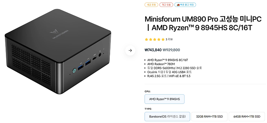 최근 미니 PC에 대한 소비자들의 관심이 높아졌죠. 특히, 게이밍 UMPC가 등장하면서 미니 PC에 대한 관심이 더 높아졌는데, 이유는 내장그래픽이 크게 향상되었기 때문입니다. 그동안 미니 PC 하면 CPU 성능만 중요시했기 때문에 사무 및 작업 용도로만 인식해 인텔(Intel) CPU 기반의 미니 PC가 더 많아서 소비자의 관심도 제한적이었습니다. 하지만, 경쟁사인 AMD가 라이젠 7000 시리즈 모바일 프로세서에서부터 내장그래픽 성능을 높이면서, 게이밍 UMPC가 등장했고 이는 미니 PC까지 확대되어 이제는 미니 PC를 작업용과 게임용까지 고려할 수 있어서 소비자들의 관심이 더 넓어졌습니다. 특히, 미니 PC 시장에서 오랫동안 인정받고 있는 브랜드 미니스포럼(Minisforum, https://www.minisforum.kr/)은 예전부터 인텔과 AMD 양쪽 기반을 두고 다양한 미니 PC를 꾸준히 선보이며, 시리즈(Series) 라인업도 화려합니다. 그중에서도 엘리트미니(Elitemini)는 오랫동안 사랑받고 있는 대중적인 라인업이고, 시대 흐름에 따라 인텔/AMD 기반 미니PC를 꾸준히 선보였죠. 오늘은 바로 이 미니스포럼의 엘리트미니에 있는 AMD 기반의 미니PC를 만나볼 텐데, UM890 PRO입니다. 그럼,