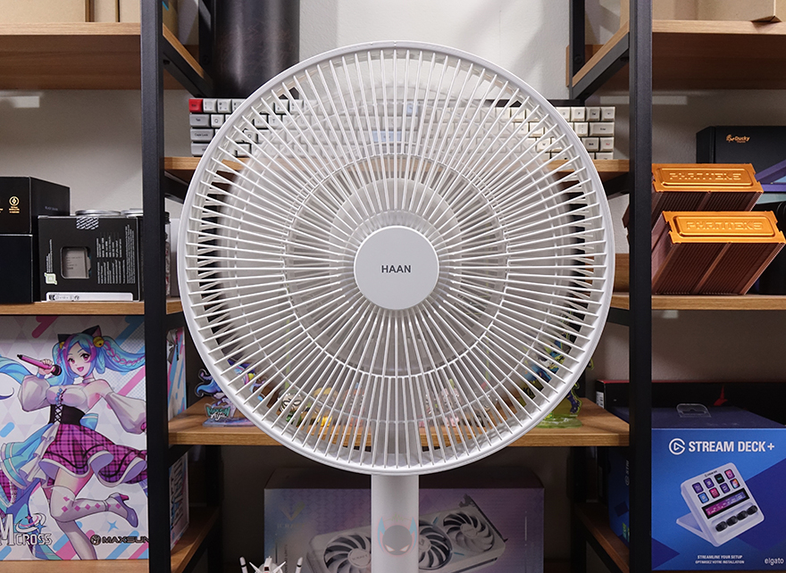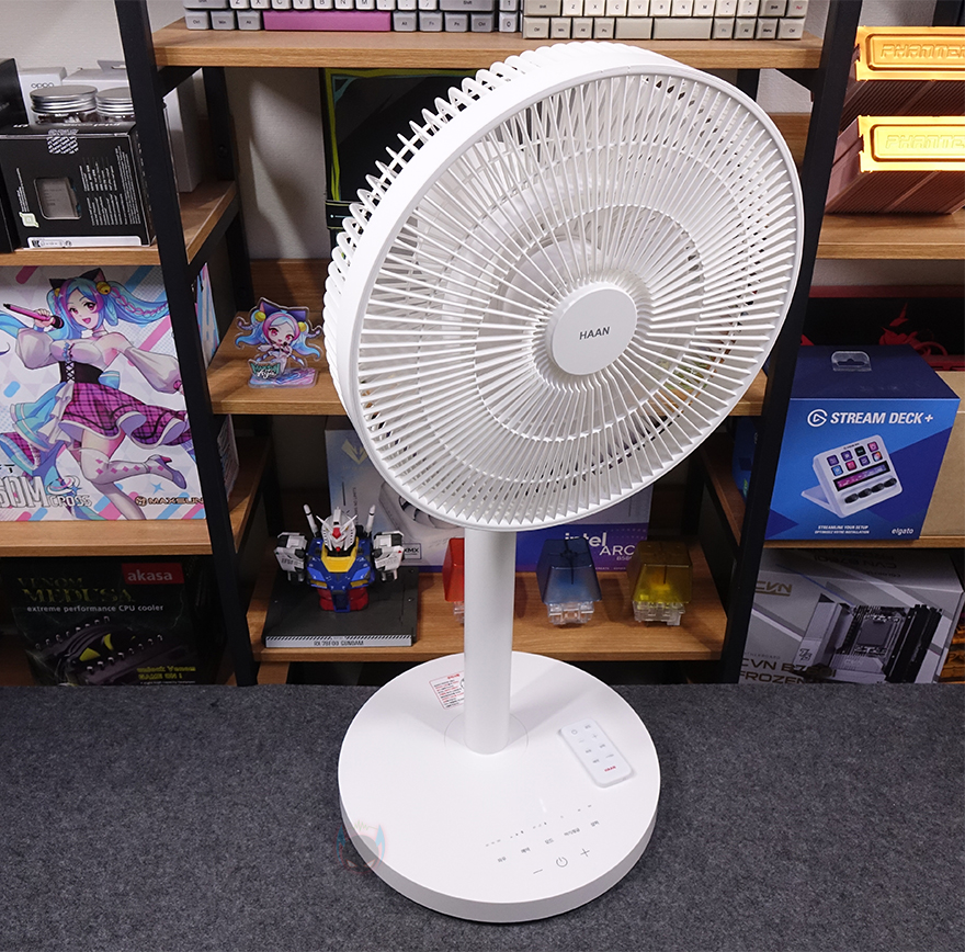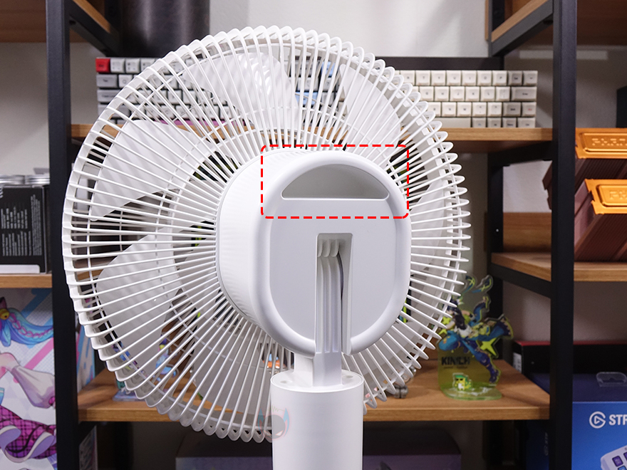 그럼, 조립까지 마쳤으니 사용 전에 부위별로 좀 자세히 살펴보는데, 일단 바람이 나오는 그릴 및 날개 부분의 크기는 그릴은 34cm, 날개는 29cm입니다. 일반 유선 선풍기보다는 조금 작은 편에 속하고, 무선 선풍기 기준에서는 전형적인 크기입니다. 참고로 한국형 무선 선풍기/서큘레이터 제품들이 무선 선풍기로 인기를 받고 있는 샤오미 제품 디자인 틀에서 만들어지기 때문에 크게 벗어나지 않습니다. 그래서, 날개 부분도 외측과 내측으로 나뉜 14 엽을 적용하고 있죠. 그리고, 후면 모터 부분에는 이동식 손잡이 홈이 적용되어 있습니다. 물론, 이 제품 역시 무선 제품이기 때문에 BLDC 모터를 사용하고 있죠.