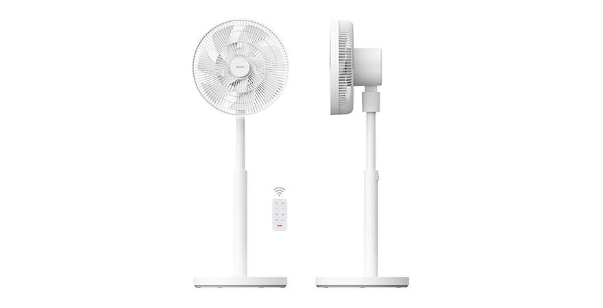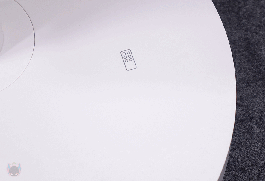 받침대 앞부분에는 조작 버튼들이 배치되어 있는데, 모두 터치방식이며, 아이콘 표시와 함께 한글 표기를 해놔서 1~2번 사용해 보면 쉽게 이해합니다. 맨 앞에는 전원과 풍량 조절 표시를 해놨죠. 그리고, 오른쪽 한 편에는 리모컨 표시를 해놨는데, 바로 리모컨을 사용하지 않을 시에는 분실이 되지 않게 마그네틱 방식으로 장착할 수 있게 지원하고 있습니다. 실제 장착해 보면 리모컨 구조 특성상 표시된 부분보다는 약간 아래 위치에 장착됩니다. 리모컨은 수은전지가 사용되고, 받침대에 있는 터치 버튼을 사용하지 않고도 모든 기능을 리모컨에서 작동시킬 수 있습니다. 그리고, 유선이나 배터리 충전 시 사용되는 전원어댑터는 약 1.5m 길이에 전력은 45W까지 지원하죠.