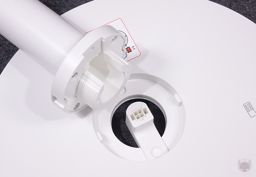 다른 선풍기/서큘레이터 제품들처럼 사용전에 조립부터 해야 하는데, 조립은 설명서를 참고하면 초보자도 쉽게 할 수 있고, 선풍기/서큘레이터 청소 좀 해 본 사람이라면 설명서를 보지 않아도 쉽게 이해하고도 조립이 가능합니다. 한마디로 간단하라는 거죠. 먼저 모터가 달린 스탠드와 받침대를 연결해 주는데, 스탠드 밑부분 받침대와 연결되는 부위에 고정 홀더를 분리해 줍니다. 고정 홀더 분리 후, 스탠드 밑부분을 받침대 홈 부분에 꽂아주고, 분리한 고정 홀더는 받침대 밑바닥 부분에서 다시 체결해 주면 스탠드와 받침대 고정 연결이 끝납니다. 참고로, 고정 홀더는 시계 반향으로 돌리면 잠금, 반대 방향으로 돌리면 해제입니다.