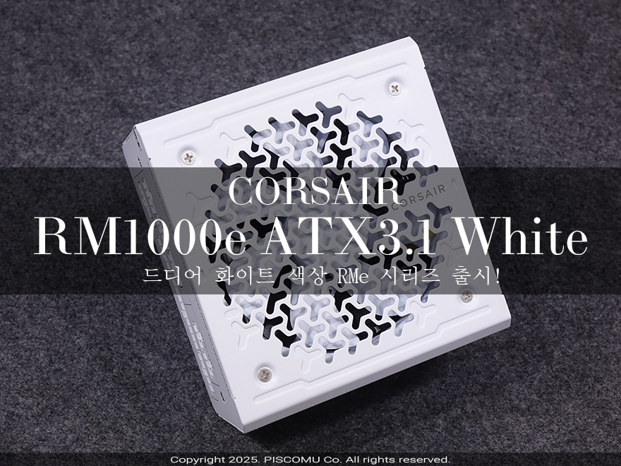 최근 파워서플라이 시장은 크게 2가지 트렌드가 있습니다. 물론, 가장 많이 사용하는 ATX 기준에서 말이죠. 하나는 콤팩트 크기, 또 하나는 콘셉트입니다. 콤팩트 크기는 깊이 기준을 의미하는데 ATX 파워서플라이는 가이드 기준으로 최소 깊이가 140mm입니다. 이 깊이에서 최대한 용량을 담아서 출시하는 거죠. 실제로 현재 140mm 깊이에서 1000~1300W 제품까지 있습니다. 그리고, 콘셉트는 바로 조립 PC를 맞출 때 신경 쓰는 부분으로 최근 파워서플라이 제품들은 블랙과 화이트 2가지 색상으로 출시하는 건 필수이고, 올-블랙, 올-화이트 디자인을 적용하는 추세입니다. 오늘 만나볼 제품 역시 이 2가지 트렌드를 모두 담고 있는데, 바로, 커세어(CORSAIR)의 RM1000e ATX3.1 화이트 파워서플라이죠. 국내에는 공식수입원 (주)컴스빌(https://www.comsvil.co.kr/)을 통해 블랙 색상이 먼저 출시되어서 이전 시간에 850W 용량의 RM850e ATX 3.1 블랙(https://piscomu.com/314994)을 만나봤었죠. 그리고, 이번에 드디어 화이트 색상까지 국내에 정식 출시되었습니다. 그럼, 커세어의 RM1000e ATX3.1 화이트 파워서플라이를 만나보도록 하죠.