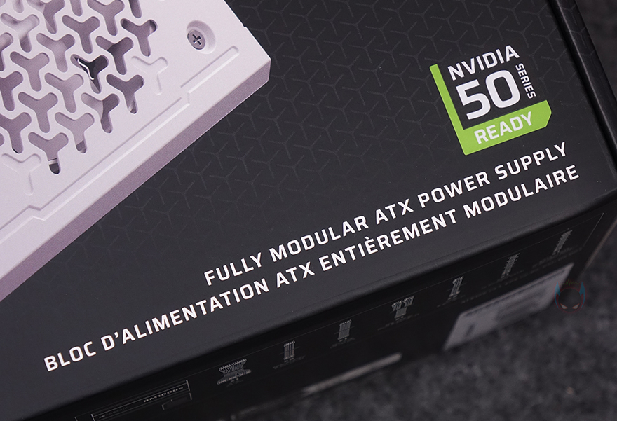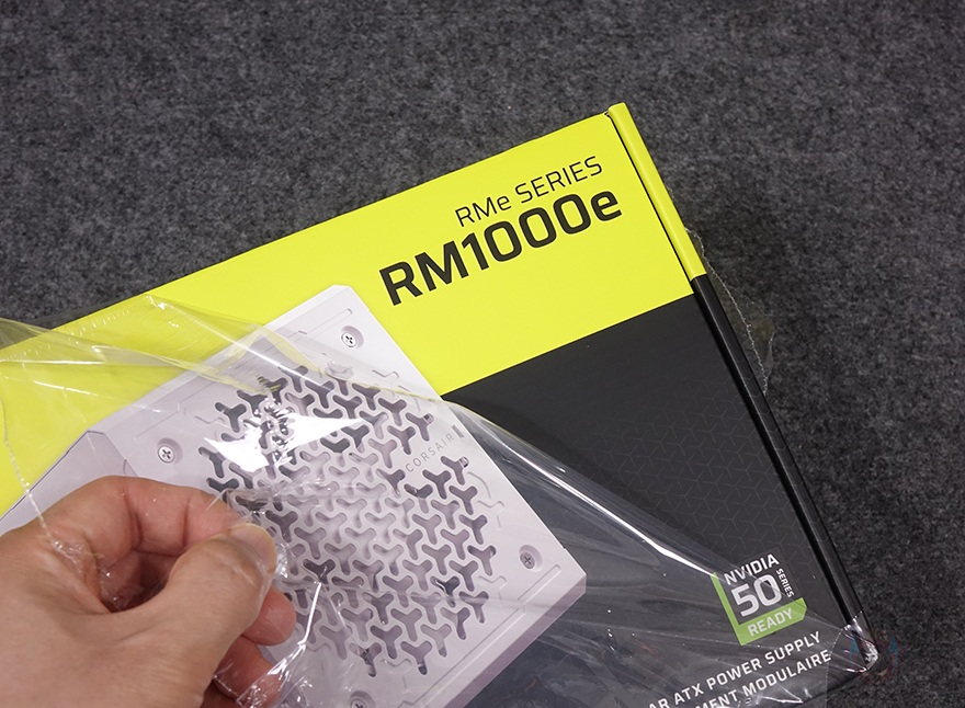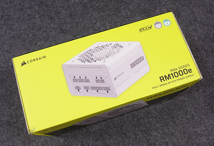 제품 패키지는 박스 형태로 박스 디자인은 먼저 블랙색상으로 출시했던 제품과 큰 차이가 없습니다. 물론, 박스 전체가 밀봉처리되어 있어서 소비자입장에선 좀 더 판매 제품에 신뢰를 가질 수 있고, 모델명과 함께 색상구분도 쉽게 되도록 박스 전면 제품 이미지도 색상에 맞춰 적용해 놨죠. 먼저 나왔던 RMe 시리즈 블랙색상을 알고 있다면, 제품 이미지만 봐도 '색상차이구나'라는 걸 쉽게 파악할 수 있습니다. 또한, 박스 전면에는 전력효율등급인 사이버네틱스 플래티넘 등급과 소음 등급을 확인할 수 있는데, 1000W 용량의 RM1000e ATX3.1는 RMe 시리즈 최상급 모델이라 앞서 만났던 RM850e ATX3.1보다 효율등급이 한 단계 더 높습니다. 그리고, ATX 3.1 규격과 Nvidia 지포스 RTX 50시리즈 최신 그래픽카드 지원 표시도 함께 확인할 수 있죠.