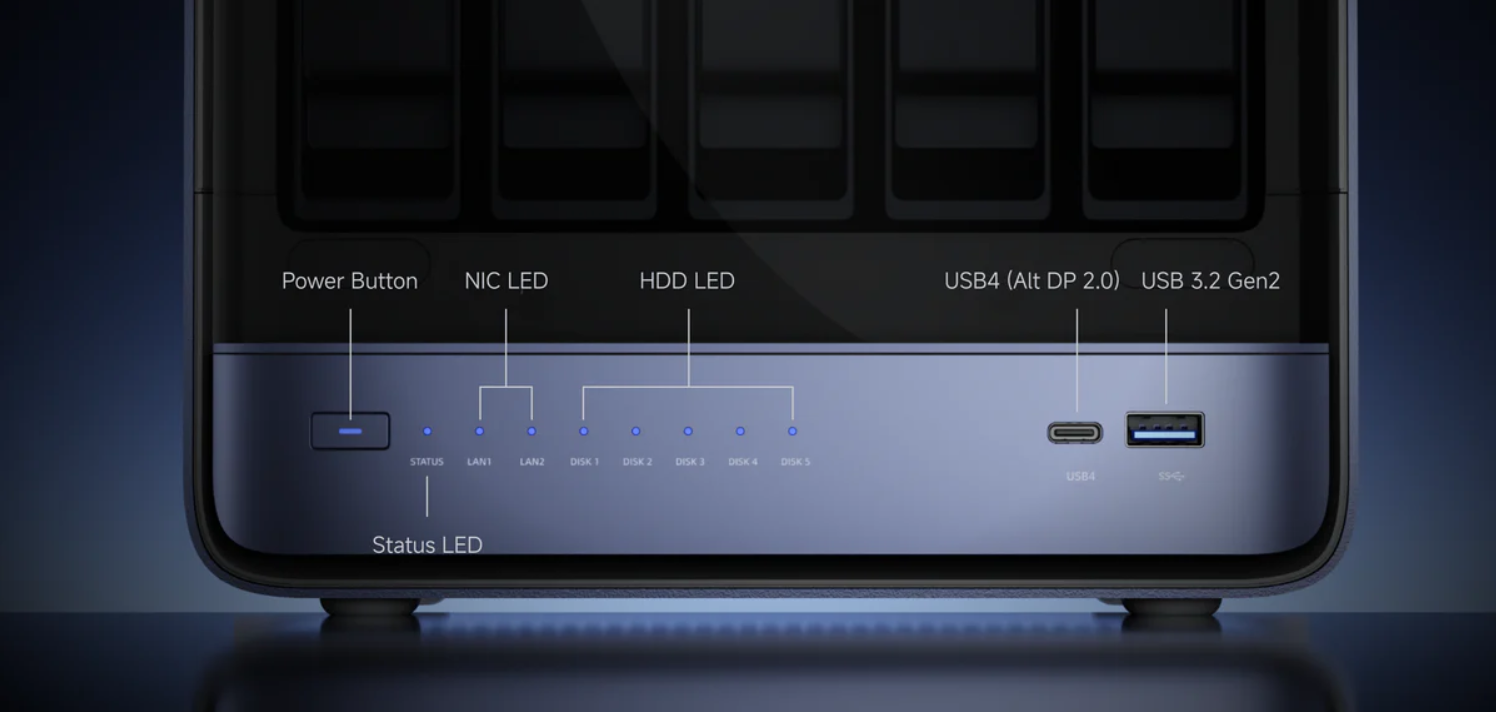 이번 AI NAS 제품군은 모두 AMD 라이젠(Ryzen) 기반 CPU를 적용했는데, N5는 8코어/16스레드 구조의 라이젠 7 255 CPU 탑재, N5 Pro는 12코어/24스레드 구조의 라이젠 AI 9 HX PRO 370 CPU를 탑재했다. 특히, 모바일 최상급 프로세서인 라이젠 AI 9 HX PRO 370은 Zen 5+Zen 5c 아키텍처에 최대 5.1GHz 부스트 클록과 CPU-GPU-NPU 삼중 연산 구조로 80 TOPS의 온디바이스 AI 성능을 제공해 대규모 언어 모델 추론 및 AI 사진 분류를 클라우드 의존 없이 처리 가능하며, 내장그래픽도 AV1 인코딩/디코딩을 지원하는 Radeon 780M으로 4K 영상도 완벽하게 재생한다.