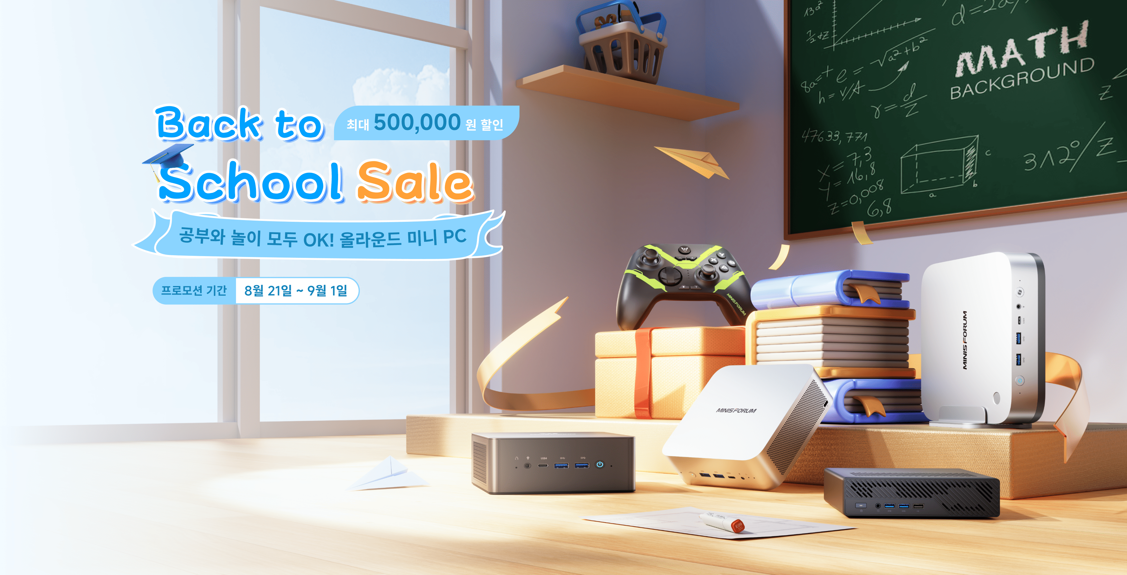 글로벌 미니PC 시장을 선두하는 기업 미니스포럼(Minisforum)이 8월 새학기 시즌 프로모션 'Back to School' 할인행사를 진행한다. 이번 프로모션 할인 행사는 8월 21일~9월 1일까지 진행되며 최대 50만원 할인 혜택을 받을 수 있는 행사로 한국 공식사이트인 '미니스포럼 코리아(https://www.minisforum.kr/pages/back-to-school)에서 진행된다.