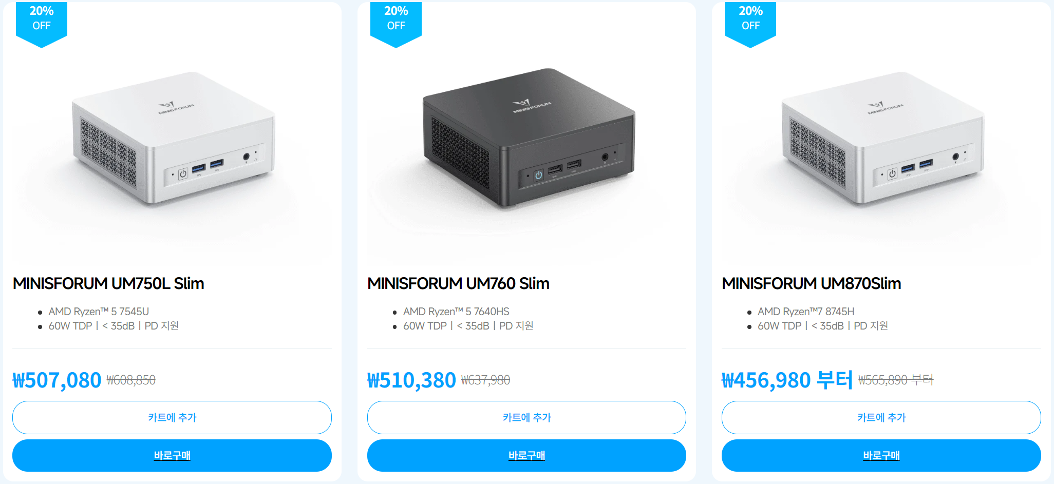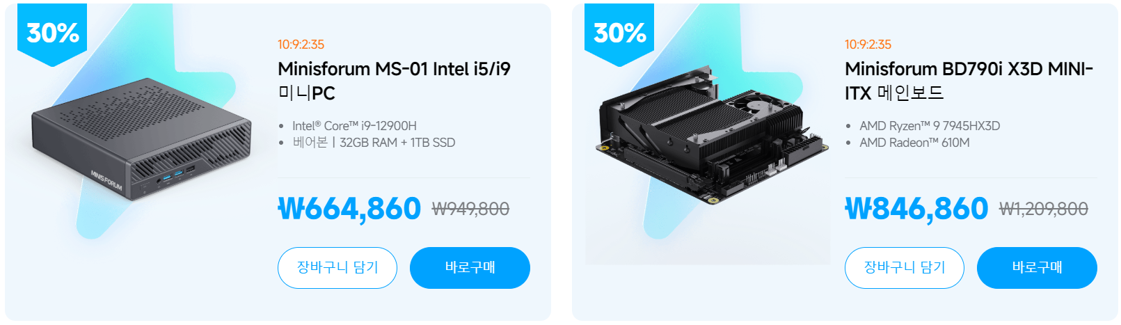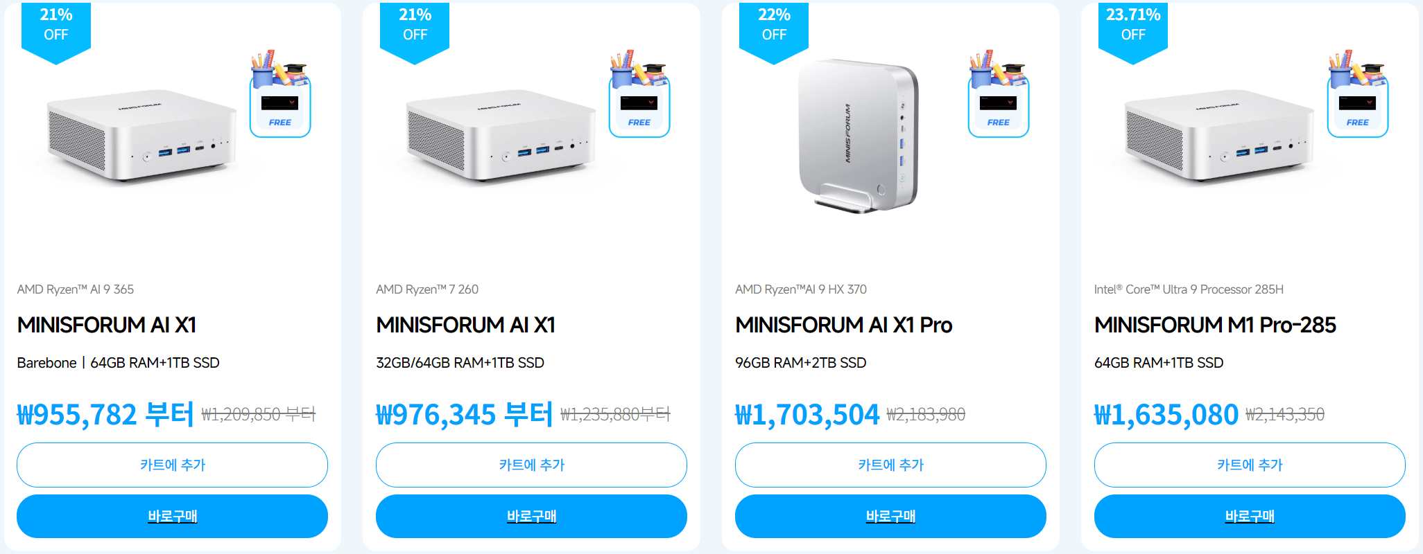 이번 Back to School 프로모션에서는 금액대별로 할인을 받을 수 있는데, 100만원이상 구매시 2만원, 150만원이상 구매시 3만 2천원, 200만원이상 구매시 4만 5천원 할인을 해준다. 또한, 행사기간동안 특가로 인텔 미니PC인 MS-01과 AMD 미니PC 기반 메인보드 BD790i X3D도 각각 30% 할인을 진행하며, 최근 출시한 고성능 AI 미니PC 라인업도 21~23.71% 할인을 진행하며, 대표 라인업 엘리트미니 UM 시리즈 제품들도 20%씩 할인에 들어갔다.