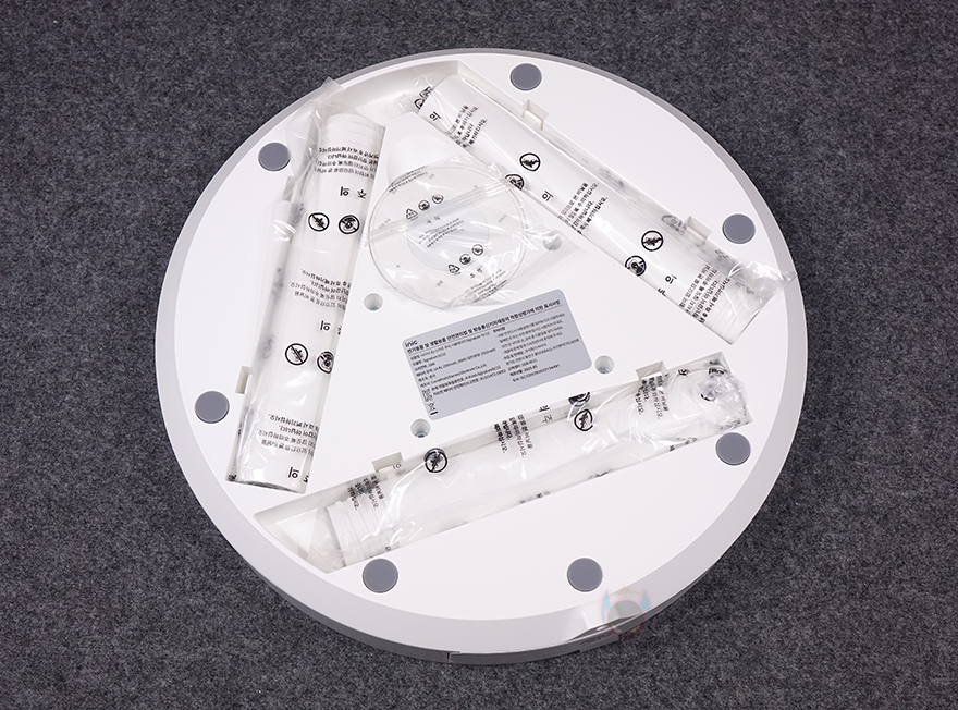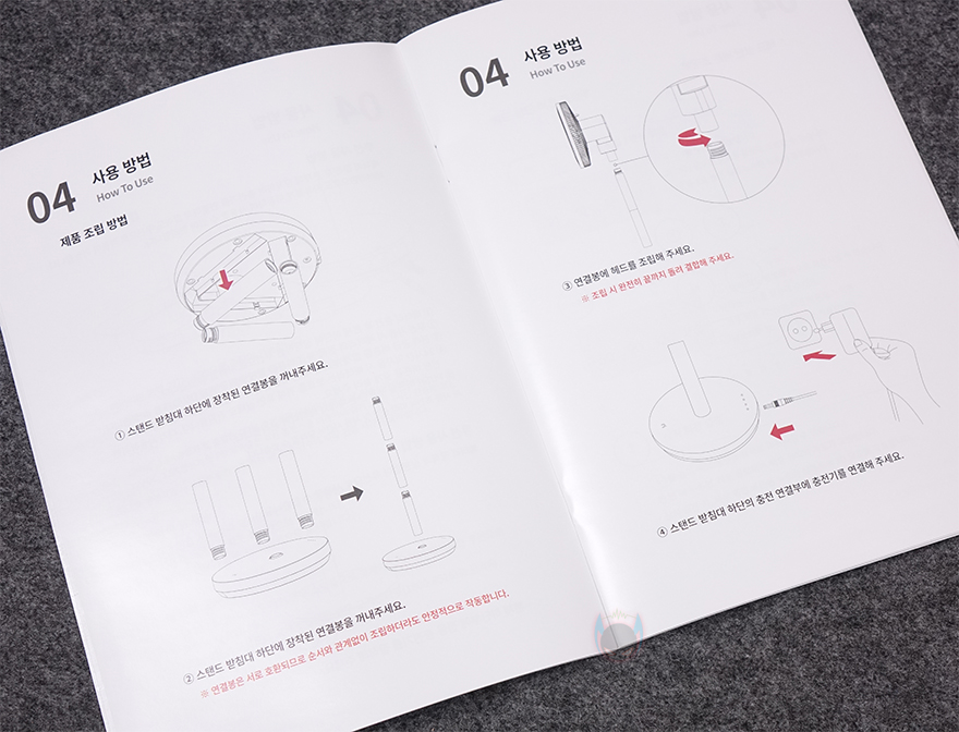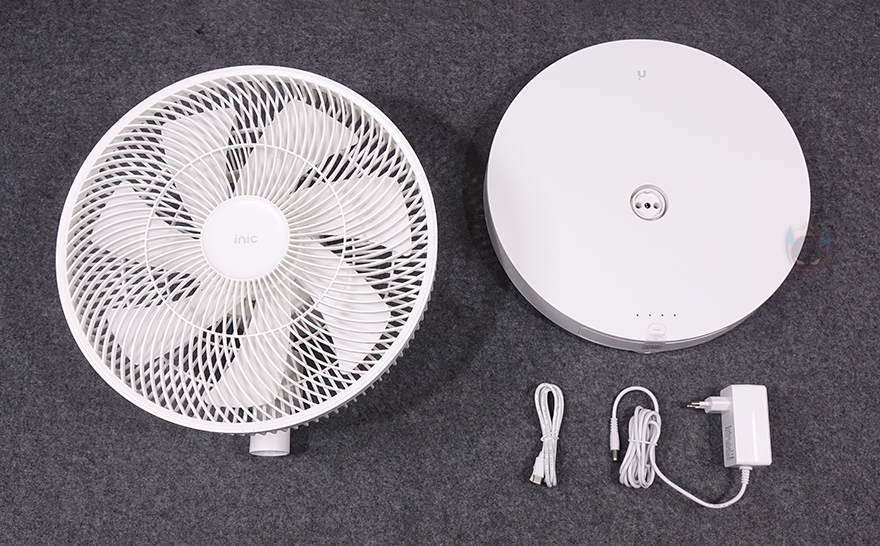 박스를 열어보면, 포장재와 함께 구성품들을 확인할 수 있는데, 의외로 간단한 구성이며 설명서를 제외한 구성품들은 모두 비닐 포장으로 처리되어 있습니다. 구성품은 크게 날개와 안전망이 조립된 상태의 헤드 부분과 스탠드받침대, 전원어댑터, USB-C 충전케이블로 이루어져 있으며, 사용 전에 조립을 해줘야 합니다. 물론, 제품설명서를 참고하면 처음 사용자나 초보자도 어렵지 않게 조립할 수 있죠.