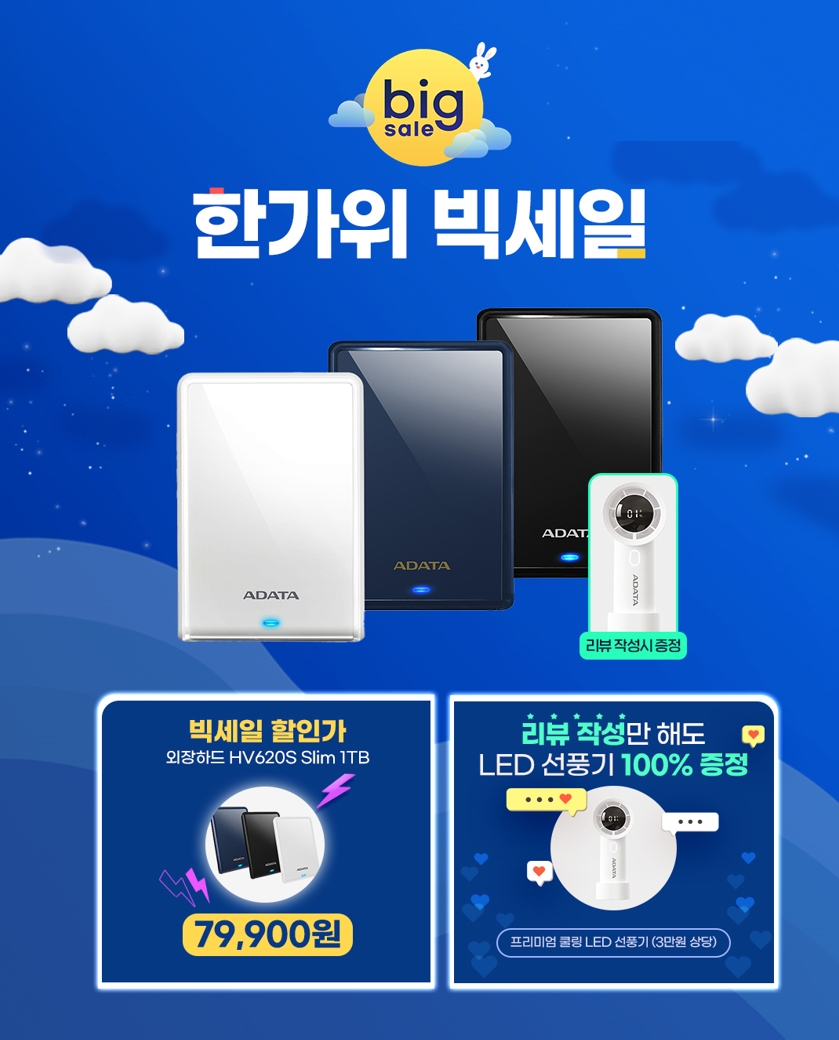 글로벌 메모리 및 스토리지 전문 기업 ADATA(에이데이타)의 국내 공식 유통사 파인인포가 오는 9월 15일부터 30일까지 진행되는 ‘지마켓 한가위 빅세일’에 참여해 인기 외장하드 제품을 특별한 혜택과 함께 선보인다.