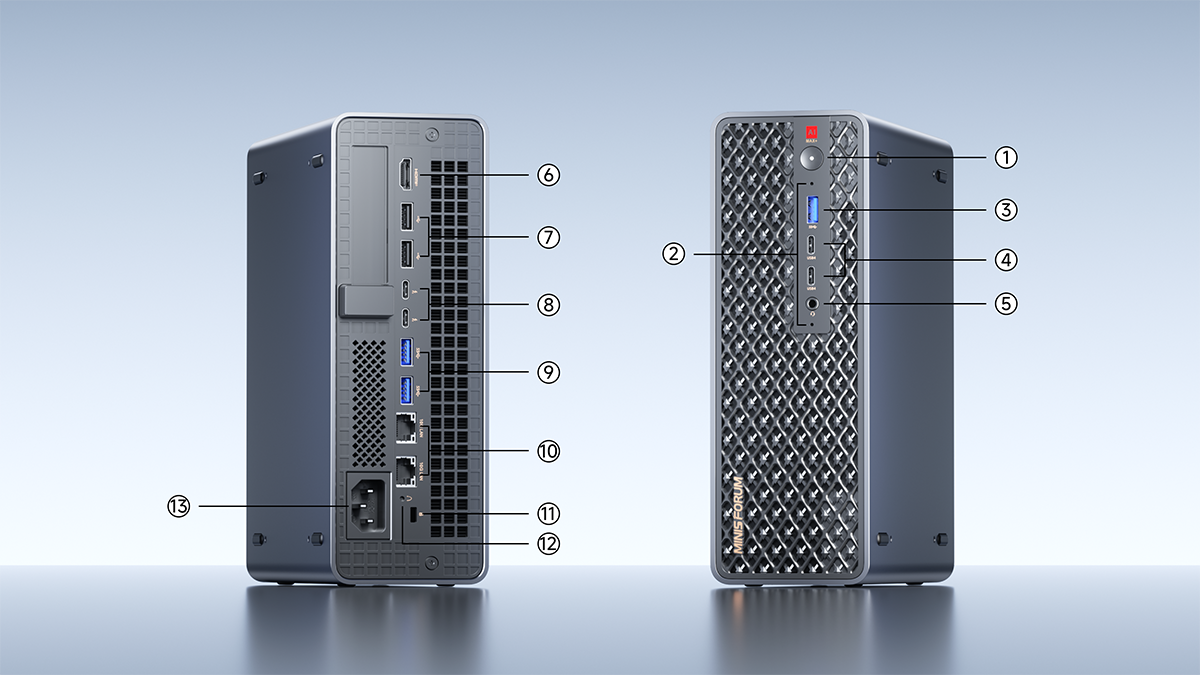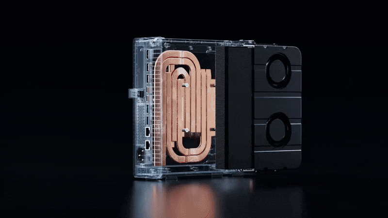 이 외에도 미니PC 최초로 80Gbps 전송속도를 지닌 USB 4.0 V2 포트를 후면에 2개 적용했으며, 전면에도 USB 4.0 포트 2개를 적용했다. 또한, 후면 I/O 포트에는 10GbE 듀얼 팬 포트와 8K@60Hz 해상도까지 지원하는 HDMI 포트를 적용했으며, 내부에는 1슬롯의 PCIe 4.0x16 배속 슬롯을 갖춰 외장 카드를 추가 장착할 수 있게 지원한다. 그리고, M.2 SSD 역시 PCIe 4.0x4 규격으로 듀얼 슬롯을 갖춰 최대 8TB 용량을 갖출 수 있게 지원한다.