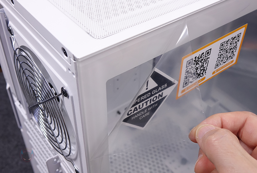 그럼, 본격적으로 다크플래쉬 DS900G PC케이스 외형부터 살펴보면, 일단 색상은 블랙과 화이트 2가지 색상으로 출시되었으며, 방금 앞서 구성품에서 확인 못한 제품 설명서를 일체형 커브드 강화유리 보호비닐 측면에 부착된 QR코드를 통해 확인할 수 있습니다. 물론, 개봉 시 혹은 조립 후에 강화유리에 부착된 포장 보호비닐은 제거해야 합니다. 왜냐하면 곡선형 강화유리이기 때문에 확실히 제거했을 때 내부를 보여주는 시야각 투명도가 높아지기 때문이죠.