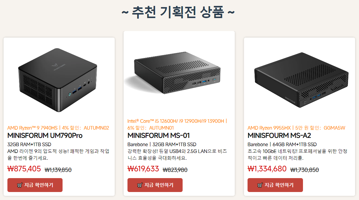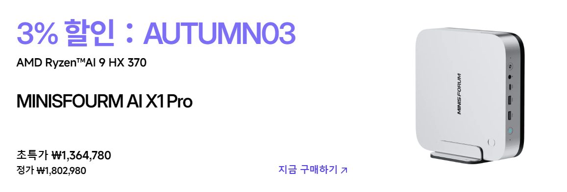 ▶ 가을 특가 페이지 바로가기 - https://www.minisforum.kr/pages/autumn-event