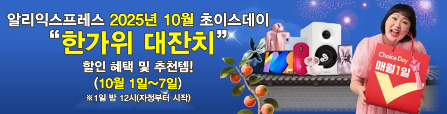 대명절 추석이 있는 10월이 찾아온다. 10월 같은 경우에는 한국뿐만 아니라 중국, 대만 등에서도 추석 같은 중추절 긴 연휴를 보내는데, 글로벌 쇼핑 플랫폼 알리익스프레스의 매월 1일에 진행되는 초이스데이 행사 역시 이번 10월 1일부터 7일까지 진행된다. 특히, 이번 2025년 10월 초이스데이는 '한가위 대잔치' 이름으로 진행되며, 작년과 마찬가지로 10월에는 프로모션 행사는 따로 없다. 다시 말해, 이번 초이스데이가 프로모션과 통합 행사이다. 이유는 중국 중추절 연휴가 1일부터 8일까지 있고, 다음 달 11월에 가장 큰 할인 행사인 광군제와 블랙프라이데이까지 한 달 내도록 행사가 이어지기 때문이다.