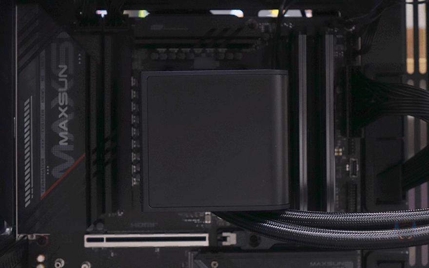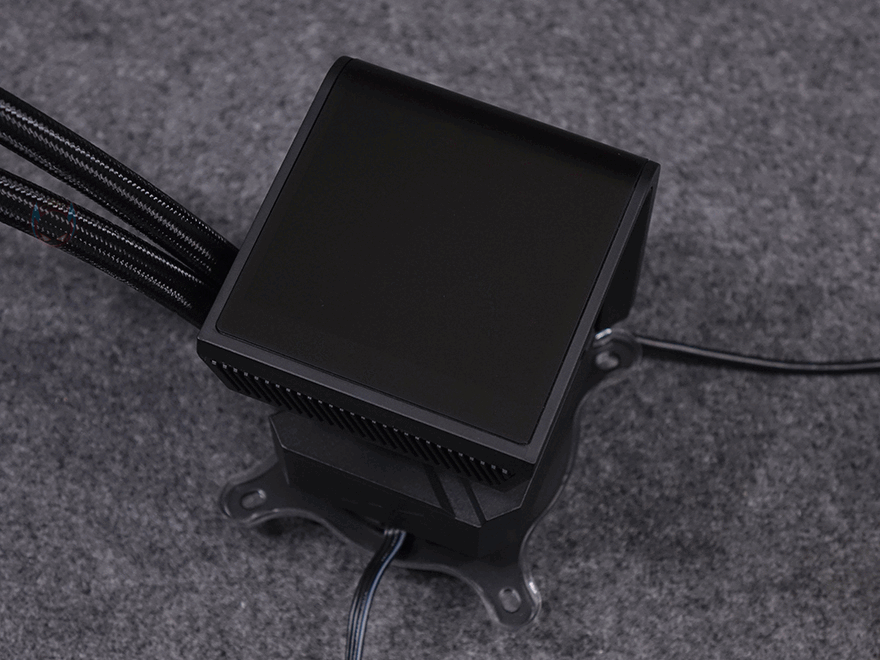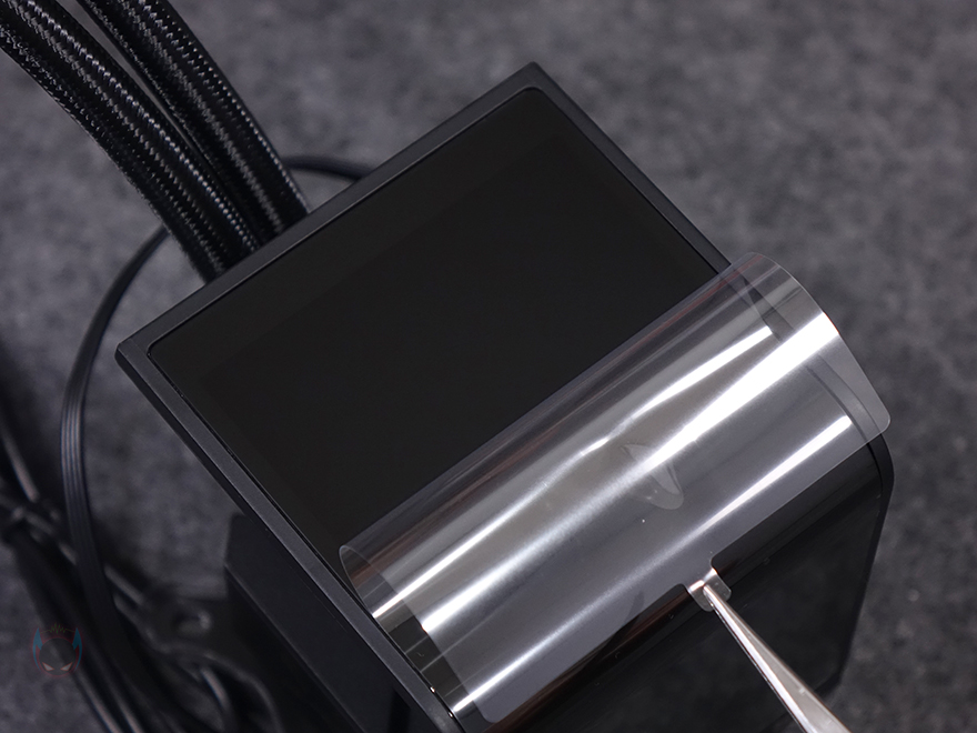 PANORAMA 3D SE 360 수랭쿨러 역시 제품의 핵심은 워터블록에 있습니다. PANORAMA 3D와 동일하게 6.5인치 크기의 커브드 AMOLED 디스플레이가 장착되어 있죠. 물론, 개봉시 보호비닐이 부착되어 있기 때문에, 사용 전에 제거를 해야 합니다. 그리고, 측면에서 보면 같은 커브드 디스플레이라도 이전 모델과 차이점도 확실히 보이는데, 워터블록과 디스플레이 사이에 공간이 생겼습니다. 이는 바로, PANORAMA 3D SE 360에서 커브드 디스플레이가 분리되는 방식으로 적용되었기 때문이죠. 마그네틱 방식으로 손쉽게 커브드 디스플레이 부분과 분리할 수 있고, 워터블록 가운데 고정 홈과 주변 X자 라인에 따라서, 커브드 디스플레이를 3방향으로 장착할 수 있습니다. 먼저 출시했던 PANORAMA 3D의 커브드 디스플레이는 고정 방향이었죠. 최근 일부 PC케이스 제품들이 차별성을 위해 역방향이나 미니타워에서 메인보드 장착 방향이 다를 경우가 있는데, 이럴 때 디스플레이 방향을 바꿀 수 있으면 소비자 입장에선 구매선택시 중요한 결정이 되죠.