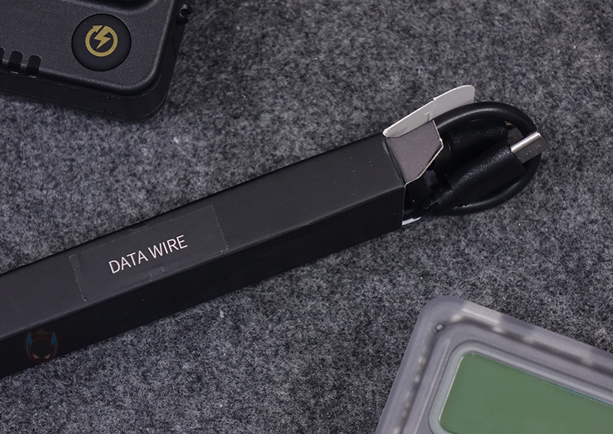 그리고, 박스를 여는 한쪽 측면에는 속박스 측면에 제품 구성 목록 표기를 확인할 수 있으며, 측면에서 속박스를 꺼내 열어보면, 바로 수납 포장된 BEEPER 보조배터리를 확인할 수 있습니다. 또한, DATA WIRE라 적힌 또다른 작은 박스에는 충전케이블이 포함되어 있죠. 그래서, 전체 제품구성은 BEEPER 보조배터리, USB 충전케이블, 제품설명서로 이루어져 있습니다. 본 제품인 보조배터리만 색상 차이를 두고 나머지 구성품은 동일하며, 개봉 시 보조배터리 화면 부분에는 보호비닐이 부착되어 있습니다.