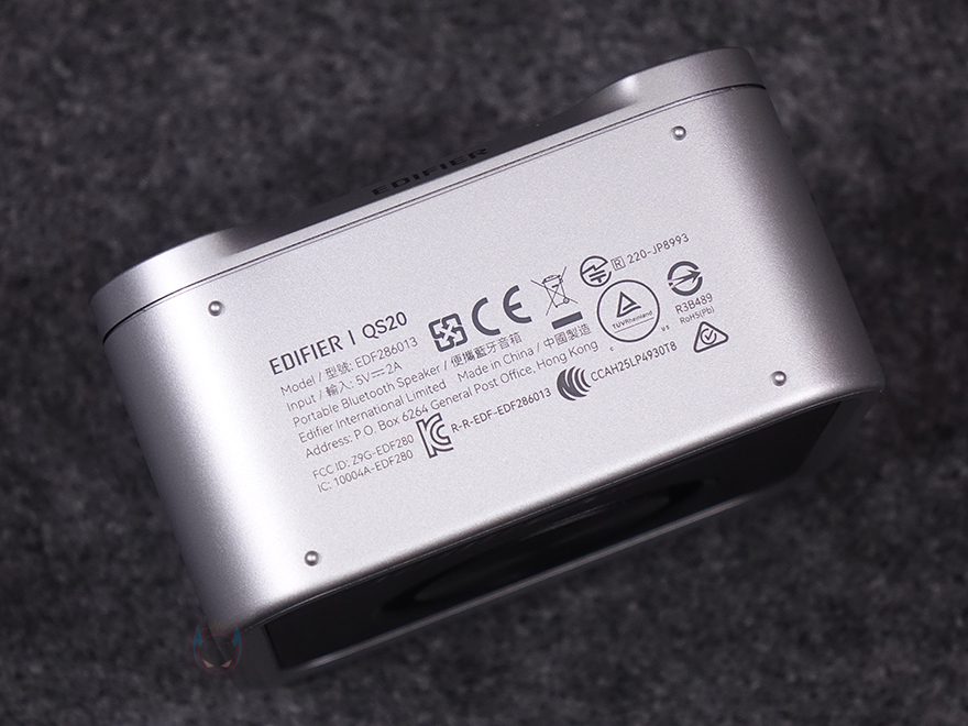 좀 더 자세히 살펴보면, 전면에는 Q 시리즈 특유의 미러 디자인(Mirror design)과 함께 중앙에 유닛 부분 그릴 디자인을 적용하고 있으며, 유닛은 43mm 크기의 풀-레인지(full-range)로 앞서 주요 특징 표기에서 확인했듯이 네오디뮴 자석 유닛입니다. 그리고, 아래에는 EDIFIER 로고를 새겨놨죠. 후면에는 저음을 보완할 수 있게 55mm 크기의 패시브 라디에이터(passive radiator)를 적용하고 있으며, 크기가 작은 만큼 앰프는 당연히 고효율의 D-앰프로 구동됩니다.