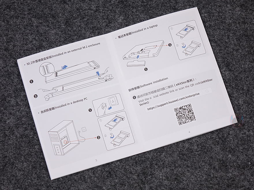 제품 패키지는 다른 SSD 제품들과 마찬가지로 박스형태로 전면에는 제품 이미지와 함께 모델명, 용량 표기 그리고, 국내 정식 수입사인 (주)이선디지털을 통한 5년 보증기간 정품 스티커를 확인할 수 있습니다. 물론, 제품박스를 버린다면, 스티커 안내 문구처럼 정품 스티커를 SSD 본체에 부착해서 사용해야 AS를 받을 시 피해를 보지 않죠. 박스 후면에는 주요 특징과 SSD 제조사들마다 제공하는 전용 관리 소프트웨어를 화웨이 역시 제공하는 QR코드 링크를 표기해 놨습니다. 조금 아쉬운 점이라면, 해당 소프트웨어를 다운로드 받을려면, 회원가입을 해야 합니다.