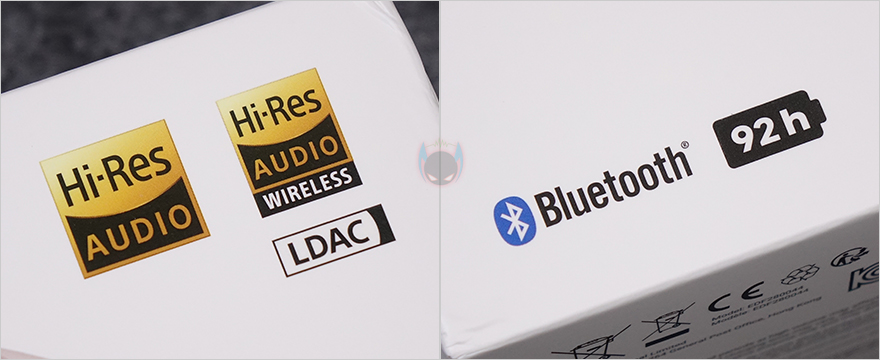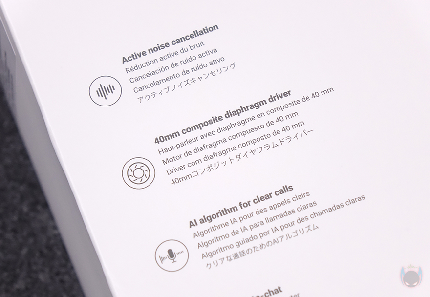 제품 패키지는 다른 무선 헤드폰 제품들과 마찬가지로 박스형 태이며, 박스 전체 밀봉처리가 되어 있습니다. 뒤에서 다시 확인하겠지만, ES850NB 무선 헤드폰은 총 4가지 색상으로 출시했고, 박스 전면에는 색상에 맞게 제품 이미지를 담고 있죠. 또한, 모델명과 함께 Hi-Res 오디오 유무선 인증과 LDAC 지원, 블루투스 지원과 재생시간 표기를 확인할 수 있는데, 박스 한쪽 측면에 좀 더 상세히 재생시간을 표기해 놨습니다. 액티브 노이즈 캔슬링 사용 시(ANC On)에는 최대 53시간, Off일 때는 최대 92시간이고, 15분 충전으로 최대 11.5시간 사용할 수 있죠. 또한, 반대쪽 측면에는 공용앱인 ConneX 지원도 확인할 수 있습니다. 박스 후면에는 색상 제품 이미지의 측면 이어-컵 이미지를 담고 있고, 옆에 제품의 주요 특징을 표기해 놨는데, 액티브 노이즈 캔슬링, 40mm 합성 다이어그램 드라이버 유닛, AI 노이즈 캔슬링 마이크, Touch-to-Chat, 멀티포인트 디바이스 연결, 접이식 디자인을 언급하고 있죠. 그리고, 아래에 구성품 목록 표기도 확인할 수 있고, 국내에도 정식 출시된 제품이라 KC인증도 확인할 수 있습니다.