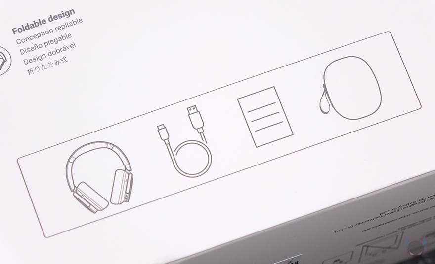 그리고, 오른쪽 이어-컵 아랫부분에는 버튼 및 포트가 배치되어 있는데, 왼쪽으로는 가운데 전원버튼을 중심으로 양쪽에 볼륨조절 버튼이 배치되어 있으며, 중간 위치에는 블루투스 페어링 버튼이 그리고 그 옆에는 연결 및 배터리 상태를 확인할 수 있는 LED 인디케이터가 배치되어 있고, 그 옆에 맨 오른쪽에는 USB 충전케이블과 연결되는 USB-C 충전포트가 배치되어 있습니다. 또한, 이어-컵 안쪽 착용 부분에는 편안한 착용감을 위해 헤드밴드처럼 가죽 재질에 쿠션을 적용했으며, 가운데 안쪽에는 사운드 출력 유닛 위치에 맞춰 필터망 처리를 해놨습니다. 끝으로, 기본 제공되는 USB 충전케이블은 USB Type-A to C 인터페이스를 가졌고, 길이는 1.2m입니다.
