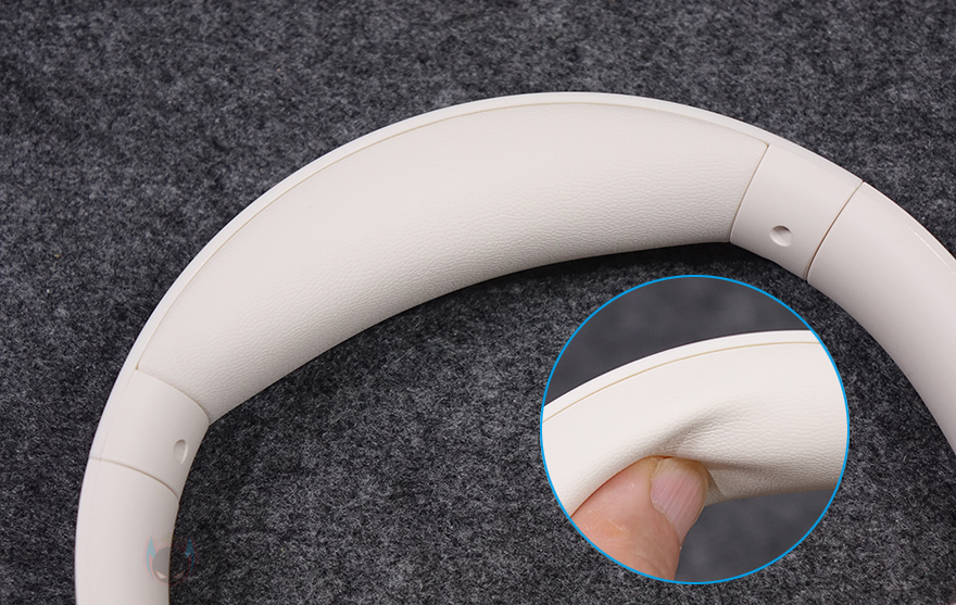 부위별로 좀 더 자세히 살펴보면, 헤드밴드 부분은 안쪽에 편안한 착용감을 위해 가죽 재질 마감과 함께 쿠션을 적용하고 있으며, 양쪽 밴드 중간쯤에 길이조절을 할 수 있게 적용되어 있습니다. 밴드 길이조절 프레임은 메탈 재질로 내구성에 신경 썼고, 최대 약 33mm 정도 늘릴 수 있습니다. 또한, 늘어나는 프레임 안쪽에는 각각 제품 기본 사양과 KC인증 표기를 해놨고, 브라운 색상 모델 같은 경우에는 메탈 프레임 색상까지 브라운 색상으로 통일시켜 놨죠.