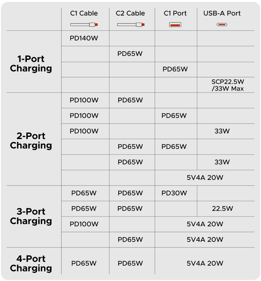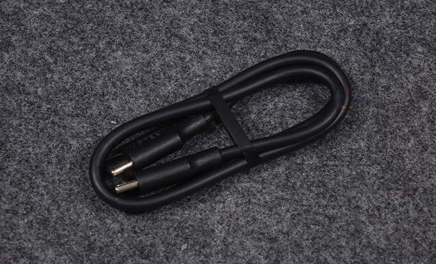 이 밖에 140W 충전 케이블 위치에 앞부분에는 외부 추가 케이블을 연결해서 충전할 수 있게 USB-A와 USB-C 포트가 각각 1개씩 배치되어 있는데, USB-C는 입출력 모두 지원하고, USB-A는 출력만 지원합니다. 참고로, 140W 충전케이블과 65W 충전케이블 역시 입출력 둘 다 지원합니다. 그리고, 65W 케이블이 수납되는 반대쪽 측면에는 145W 모델과 마찬가지로 전원버튼과 배터리 잔량을 확인할 수 있는 LED 디스플레이가 배치되어 있고, 뒤에서 확인하겠지만, 이 제품 역시 저전력 충전 모드를 지원합니다. 그리고, 제품 후면에는 제품 박스에서 확인했던 기본 사양 표기를 다시 확인할 수 있고, 기본 제공되는 USB 충전 케이블은 양쪽 모두 USB-C 인터페이스를 가졌고, 50cm 길이를 가졌습니다.