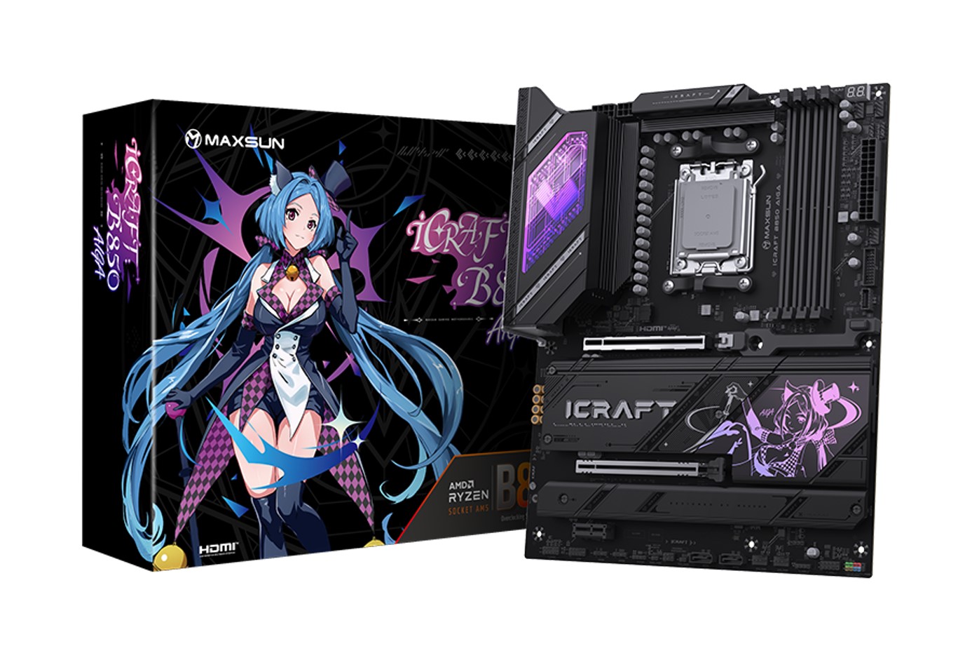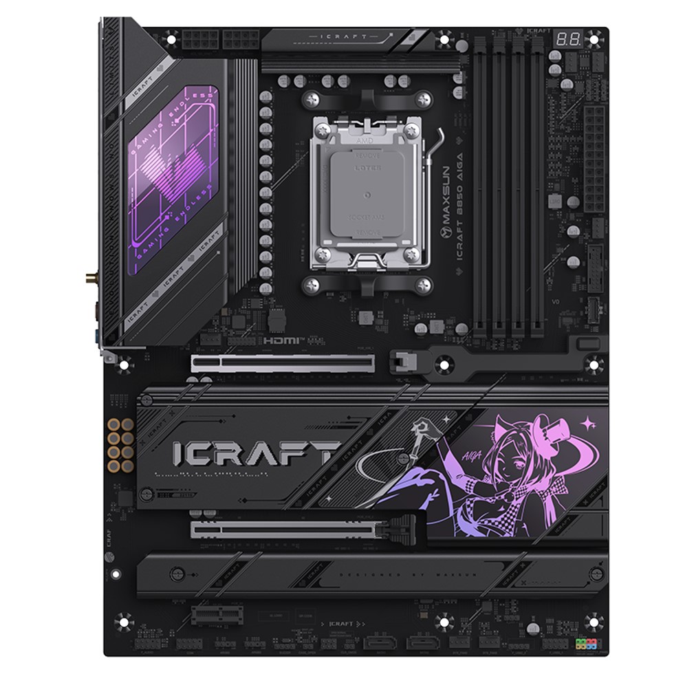 중국의 PC하드웨어 전문업체인 맥선(MAXSUN)이 다음 달 12월 14일에 자사의 플래그쉽 B850 메인보드 iCraft B850 AIGA를 출시한다. 이번 iCraft B850 AIGA 메인보드는 AMD의 첫 아이돌 캐릭터 디자인 콘셉트 메인보드이기도하다. 이미 맥선은 하반기 초부터 AMD 메인보드 라인업에 B850칩셋 모델을 추가하기 시작했으며, 최근에는 자사의 인텔 메인보드에서 시작된 iCraft CROSS 시리즈도 AMD B850칩셋 메인보드로 출시되었다. AIGA 시리즈는 또다른 아이돌 콘셉트로 그동안 그래픽카드 모델에만 적용되었고, 이번에 처음으로 메인보드로 출시한다.