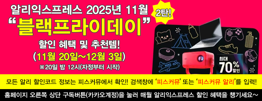| 알리익스프레스 2025 블랙프라이데이 할인코드(11월 20일 0시~12월 3일 밤 11시 59분까지) (추가 할인코드 발생시 업데이트됨) |