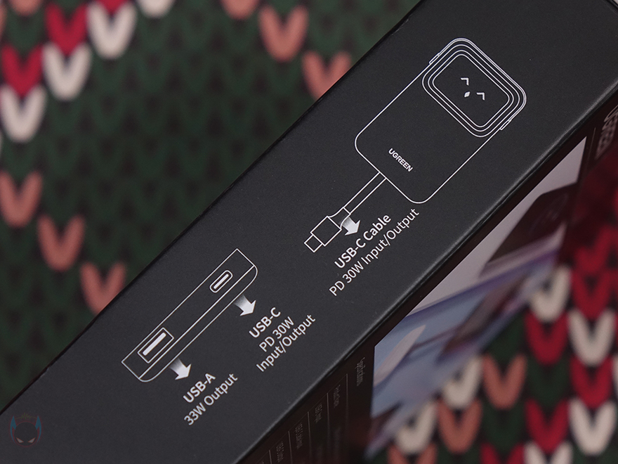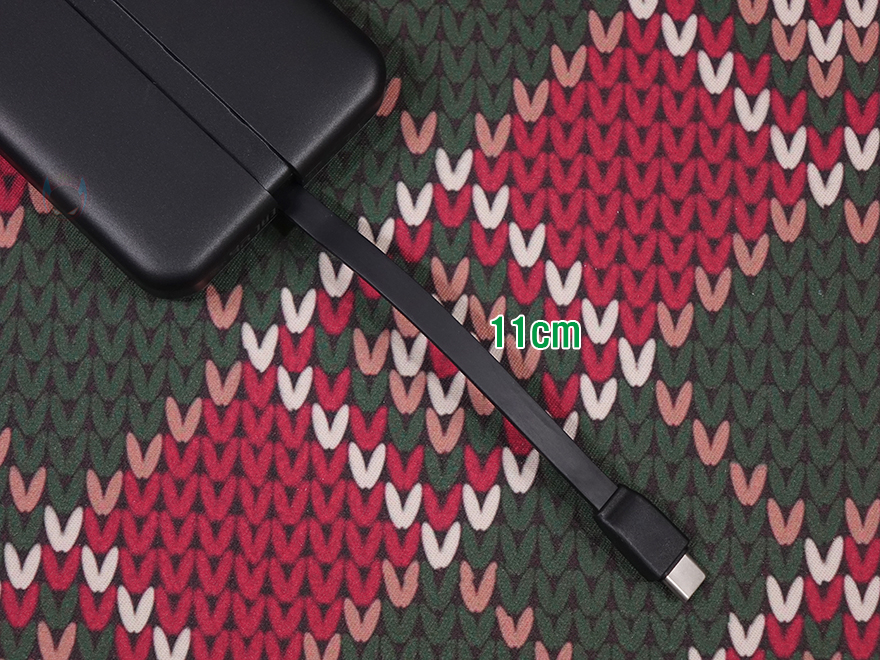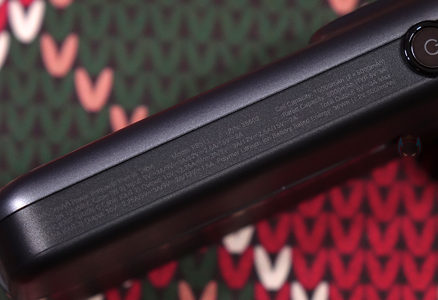 특히, 스크린 부분과 같은 위치에 양쪽 측면에는 Uno 시리즈 충전기와 비슷한 디자인으로 헤드셋을 연상케 하는 디자인을 적용했으며, 오른쪽 측면에 전원버튼이 적용되어 있습니다. 그리고, 전원 버튼과 같은 위치에 오른쪽 측면에는 제품 박스에서 확인했던 기본 사양표기를 다시 확인할 수 있죠. 제품 상단에는 USB 충전 포트 2개가 배치되어 있는데, USB 타입 C 포트와 타입 A 포트로 타입C 포트는 입출력을, 타입A포트는 출력만 지원합니다. 참고로, 타입C 포트는 최대 30W, 타입A 포트는 최대 33W를 지원하죠. 그리고, 제품 후면에는 가운데를 가로지르면서 케이블이 내장된 걸 확인할 수 있는데, 케이블은 손가락으로 들어 올리면 쉽게 뺄 수 있으며, 홀더 부분에 수납될 때는 인터페이스 부분은 마그네틱 방식으로 적용되어 있습니다. 케이블 길이는 약 11cm이고, 연결 인터페이스는 USB-C로 역시 입출력 모두 지원하고 최대 30W 지원합니다. 끝으로, 기본 제공되는 USB 충전 케이블은 양쪽 모두 USB-C 인터페이스를 가졌고, 길이는 50cm입니다.