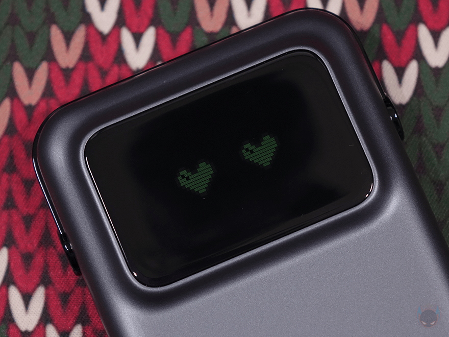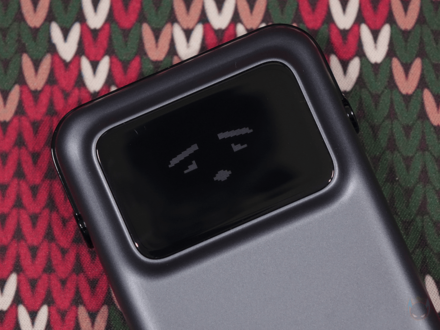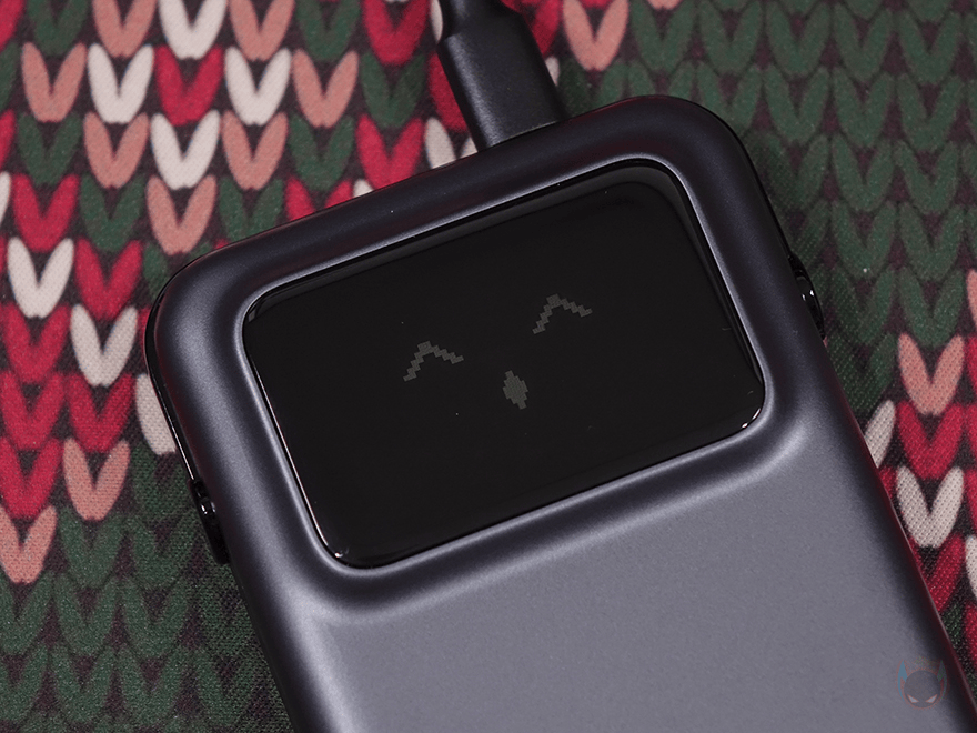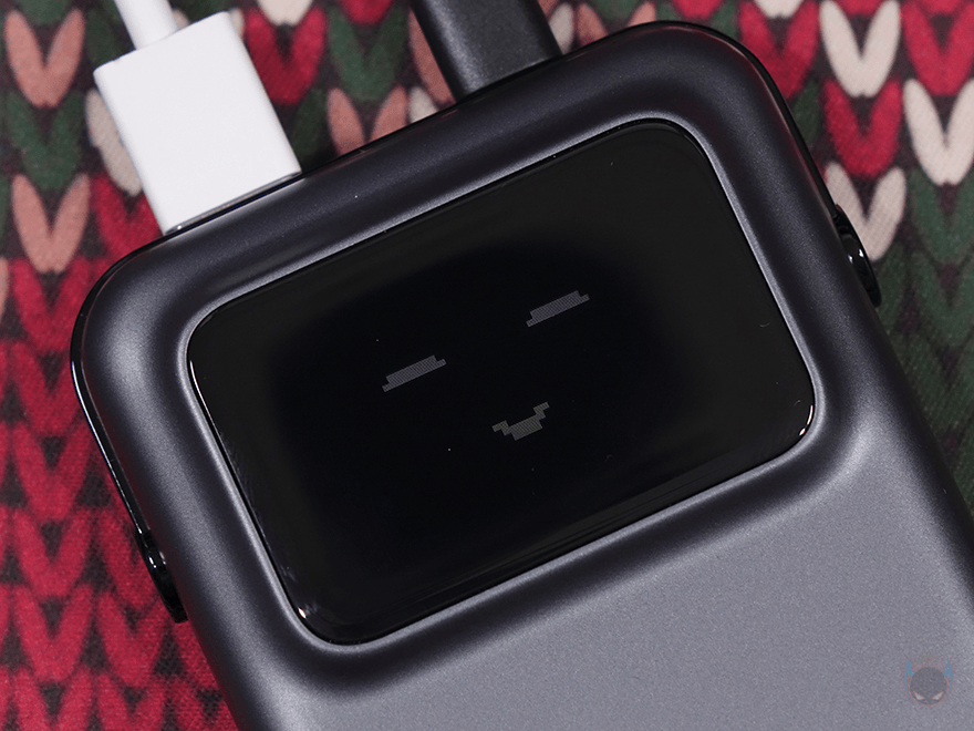 Uno 30W 보조배터리는 앞서 확인했듯이 케이블이 내장되어 있어서 보조배터리만 챙겨도 스마트폰 같은 기기 1대를 바로 충전할 수 있습니다. 그리고, 충전케이블도 1개 제공해주고 있어서, 별도의 추가 케이블 구매 없이도 기본 구성품으로 최대 2대 기기를 충전할 수 있죠. 여기에 저전력 모드까지 지원하기 때문에 스마트워치나 무선 이어폰 같은 전용 충전케이블도 USB-A 포트에 연결하면 최대 3대를 충전할 수 있습니다. 그리고, 충전하는 동안에 20초 동안 전원버튼을 누르지 않으면 2가지 이모티콘이 랜덤으로 나오며, 1분 이상 버튼을 누르지 않아면, 알아서 화면 밝기도 한단계 아래로 내려가고, 여기서 다시 1분이상 버튼을 누르지 않으면 저전력 스크린 화면을 Off 시켜 보조배터리 낭비를 줄입니다. 로봇콘셉트답게 스마트한 보조배터리죠. 이밖에도 배터리 잔량에 따라 숫자표기 색상도 그린→화이트 →레드로 변경되며, 배터리 잔량이 많지 않으면 이모티콘도 바뀝니다.